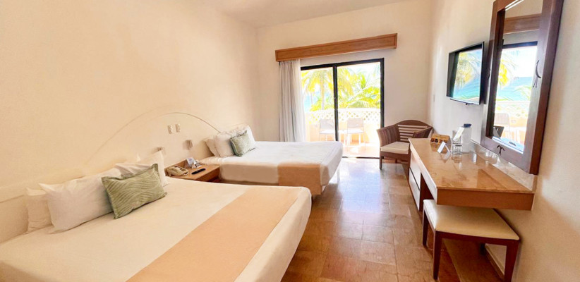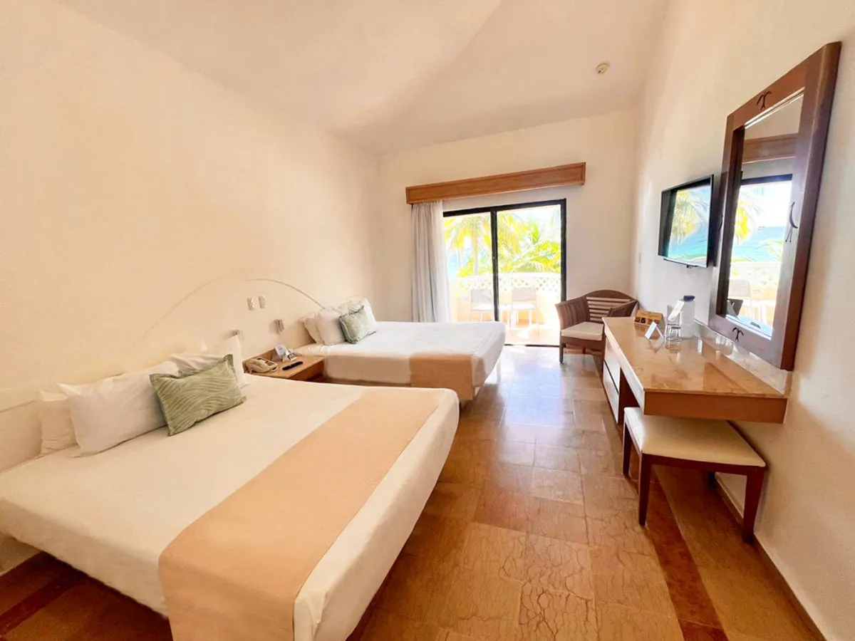 балкон/ терраса, вид на океан, двуспальная кровать или две односпальные кровати. Количество гостей: 4 (включая детей)