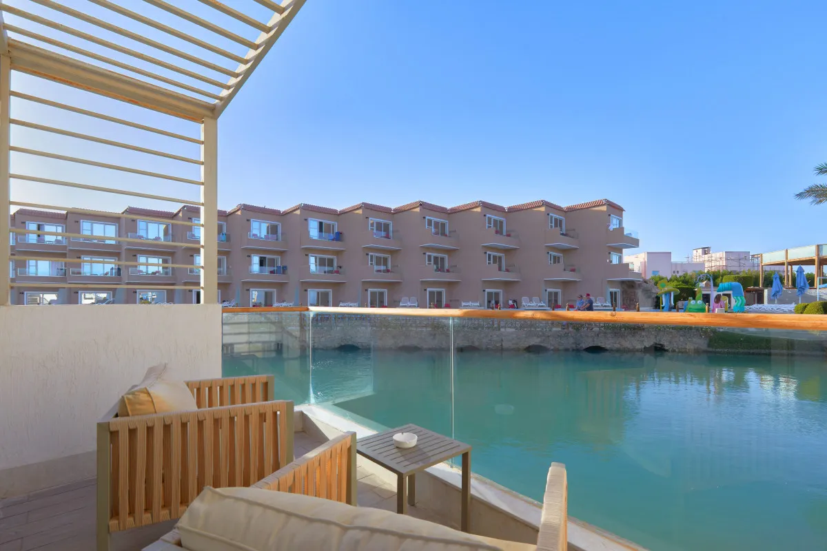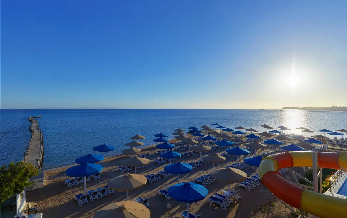Отель Bellagio Beach Resort and Spa (бывший Panorama Bungalows Aqua Park) расположен на живописном побережье Красного моря в районе Эль-Ахея. Территория отеля представляет собой гармоничное сочетание элегантной архитектуры и экзотического ландшафта. Особенностью планировки является наличие уникальных водных вилл, расположенных прямо над гладью искусственных лагун.