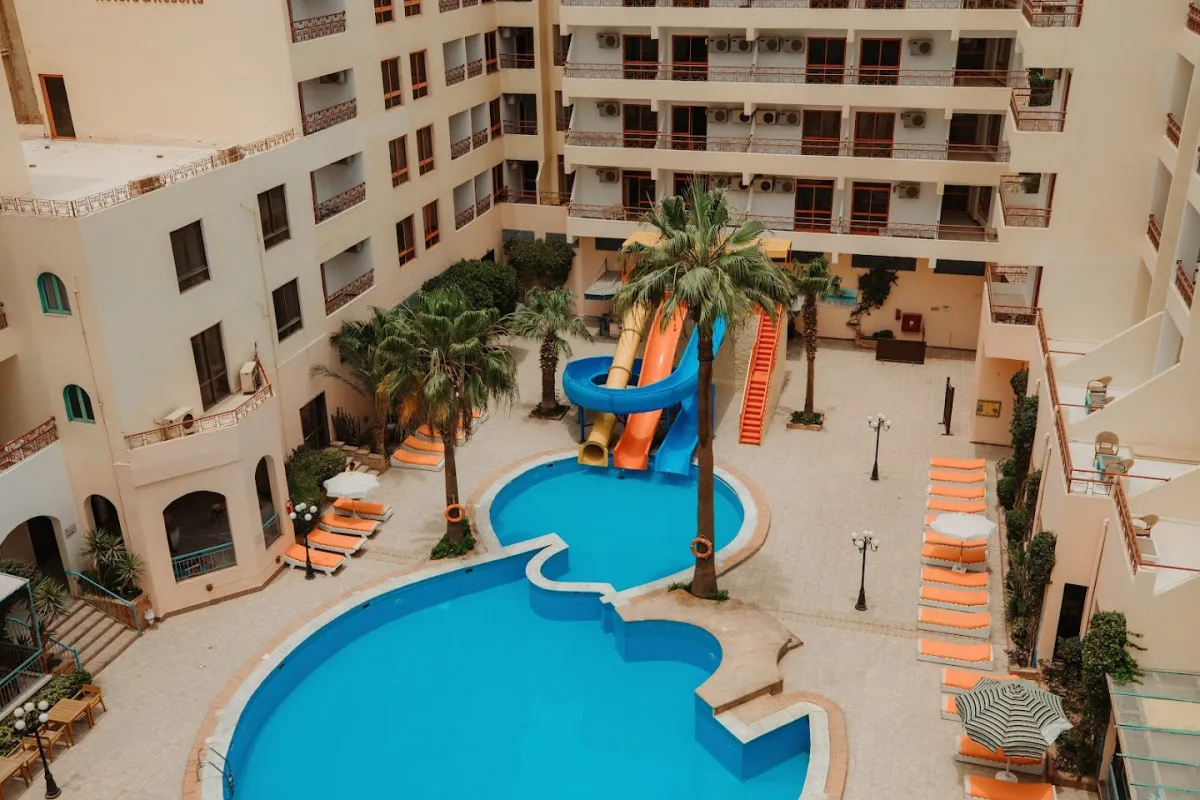 Empire Aqua Park – это курорт с доступом к пляжу отеля-сестры Empire Beach, аквапарком и несколькими зонами отдыха, расположенный в центре Хургады. Отель предлагает спокойную, комфортную атмосферу, большие бассейны с пресной водой, насыщенную дневную и вечернюю анимацию, а также разнообразие ресторанов и баров. Гости могут легко чередовать отдых у бассейна с морскими развлечениями, прогулками по городу и активностями на территории.