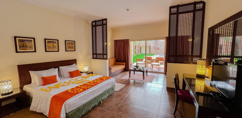 Архитектура отеля органично вписана в природный ландшафт, благодаря чему из большинства точек открываются живописные виды на море или ухоженную территорию. Среди ключевых особенностей курорта – несколько бассейнов, широкий песчаный пляж, большой выбор спортивных и водных активностей, а также собственный дайвинг-центр, позволяющий гостям исследовать богатый подводный мир Красного моря.
