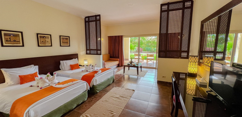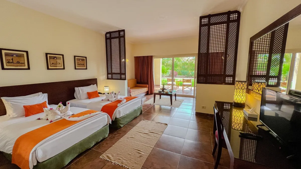 Отель Gemma Resort расположен в живописной бухте Dorry Bay в Марса-Алам – одном из самых спокойных уголков побережья Красного моря, известных своими тихими, нетронутыми пляжами вдали от городской суеты. Курорт представляет собой настоящий оазис тишины и гармонии, где мягкий морской бриз, просторные зеленые сады и панорамные виды создают атмосферу полного расслабления.