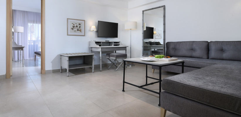 58 м2, люкс с кроватью размера queen-size, вид на сад, бассейн или море, количество гостей: 2 взрослых + 2 ребенка или 4 взрослых