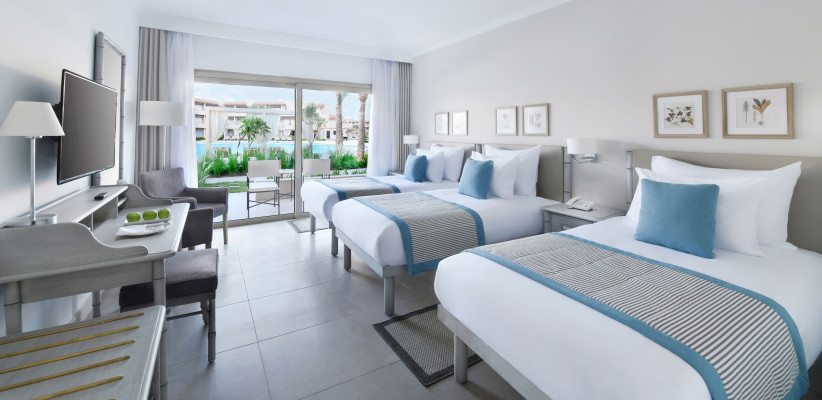 55 м2, люкс с кроватью размера queen-size, вид на бассейн, количество гостей: 2 взрослых + 2 ребенка или 3 взрослых + 1 ребенокSuperior Triple, Queen or Twin Bed, Garden or Pool View