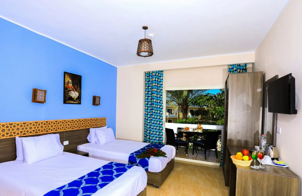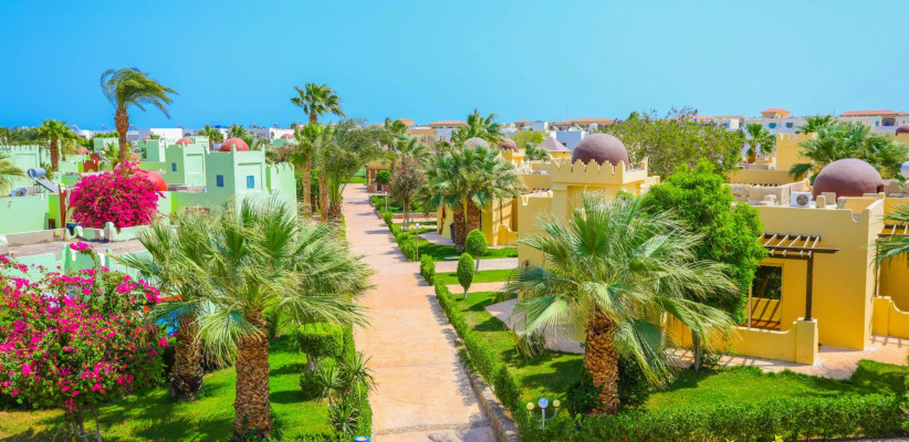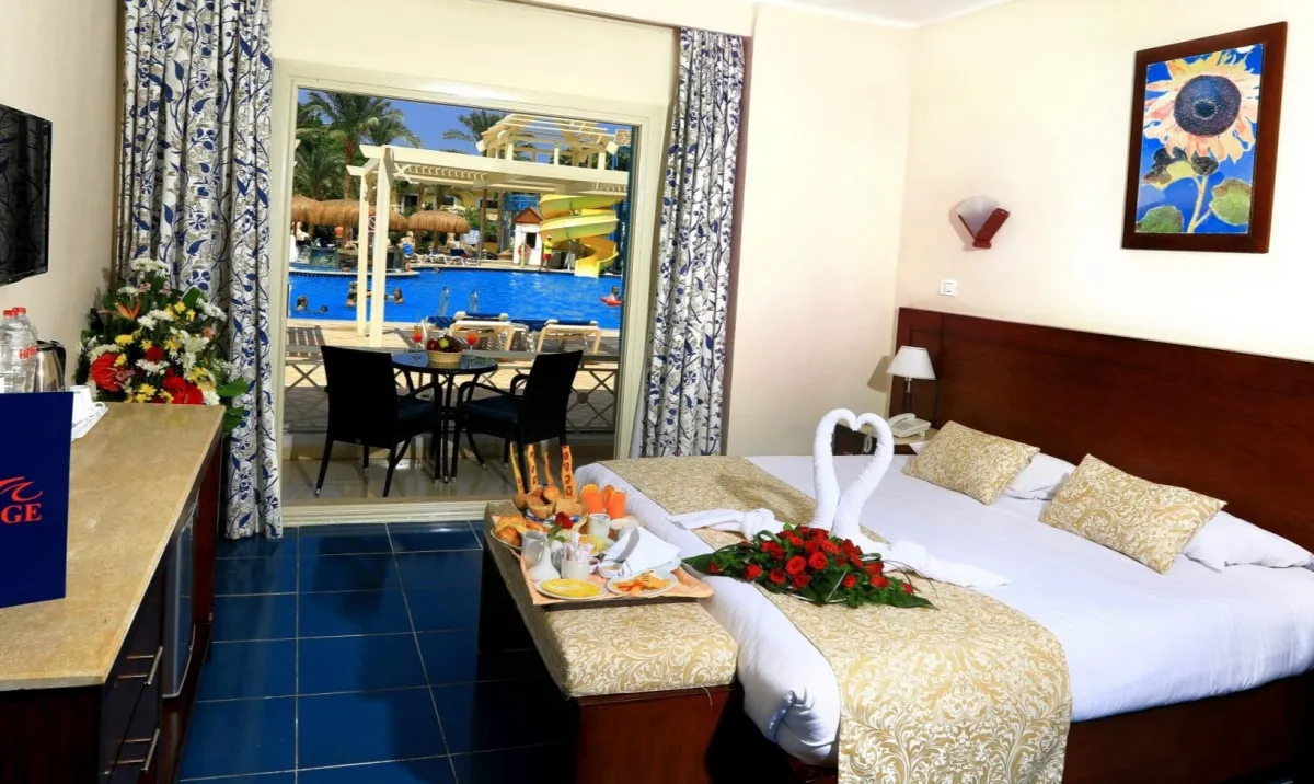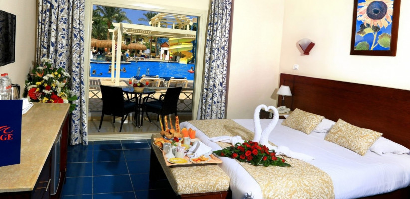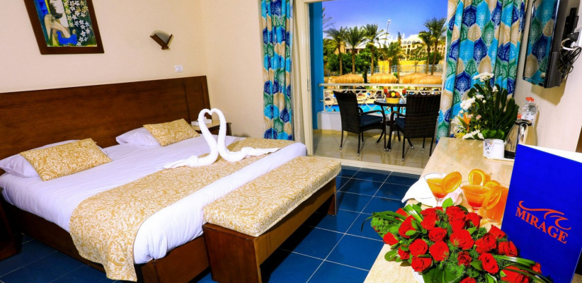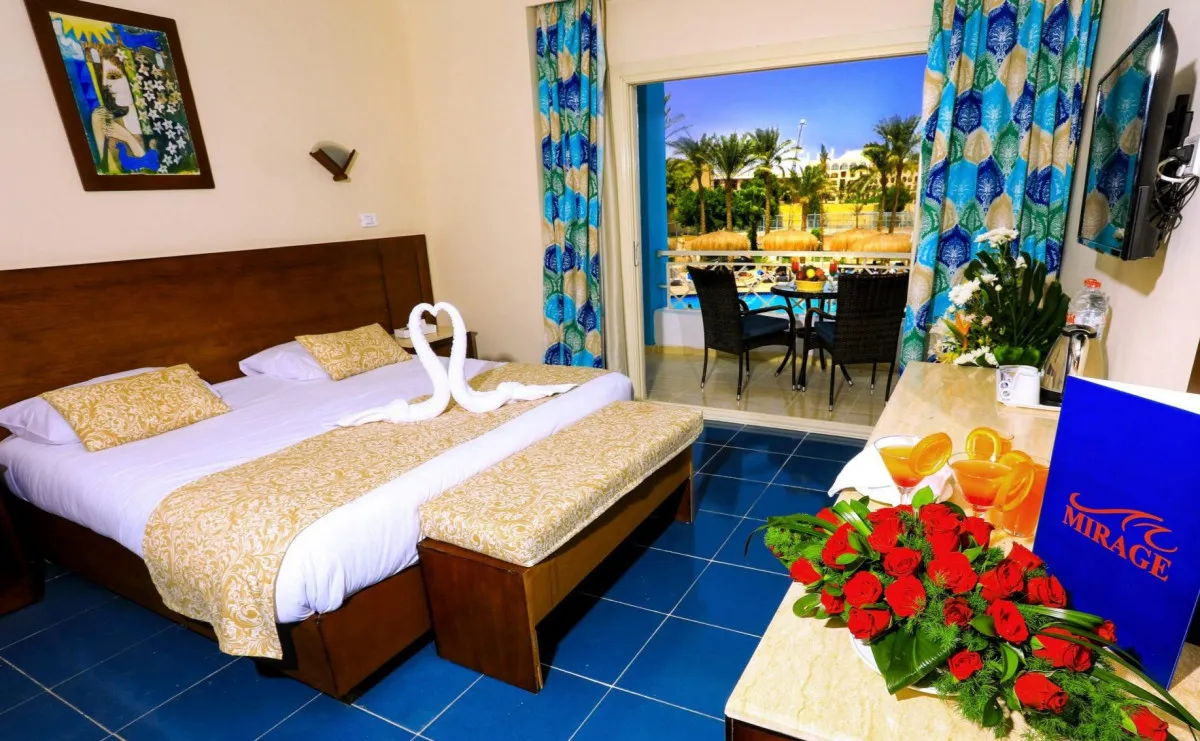 Отель Mirage Bay Resort And Aquapark 4* имеет территорив в 200 000 м2 с парком, бассейнами, аквапарком, лагуной, песчаным пляжем, комплексом ресторанов и баров. Был открыт в 1994 году. Отель находится на первой береговой линии. Расстояние от центра Хургады – 17 км, от аэропорта Хургады – 15 км. Расстояние до ТЦ Senzo Mall – 2 км.