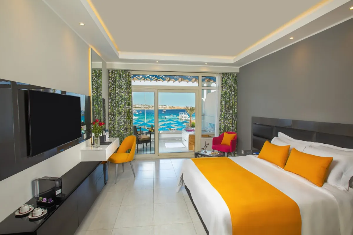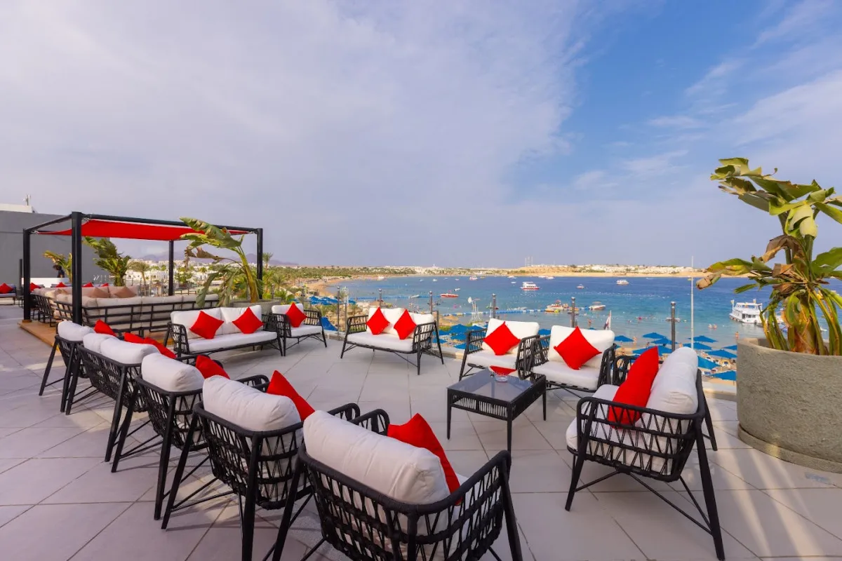 Отель расположен в престижном районе Наама-Бей, известном своей бурной ночной жизнью и множеством развлечений. До международного аэропорта Шарм-эль-Шейха – 15 километров. Рядом находятся популярные достопримечательности: национальный парк Рас-Мохаммед, монастырь Святой Екатерины и лучшие места для дайвинга, что делает отель идеальной базой для исследования красот Синая.
