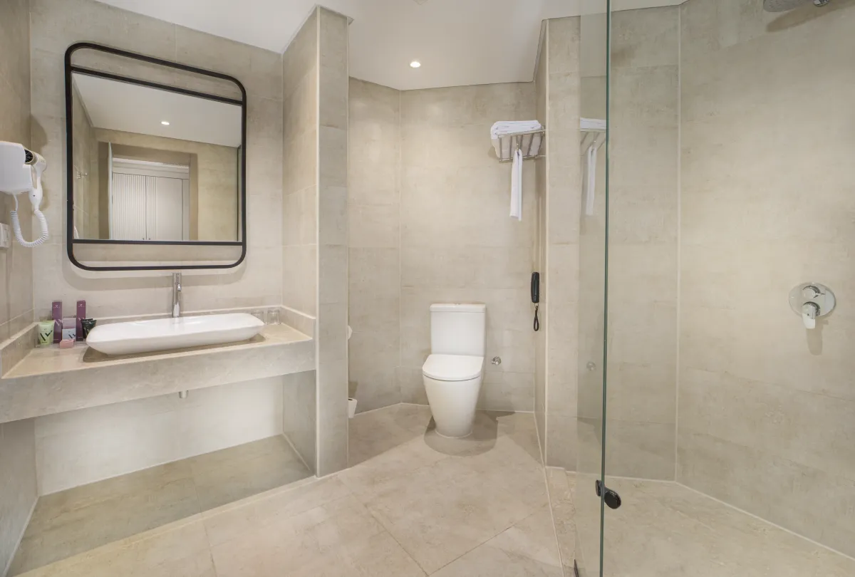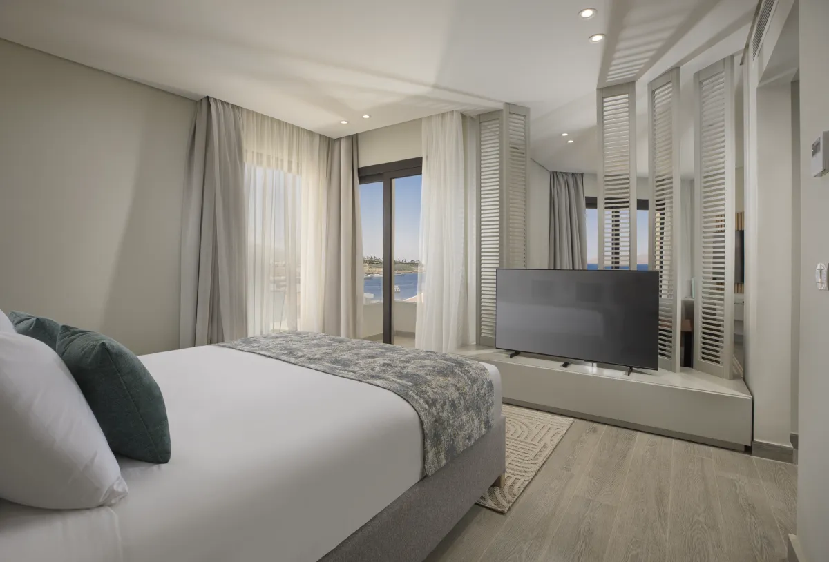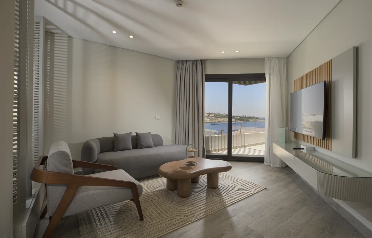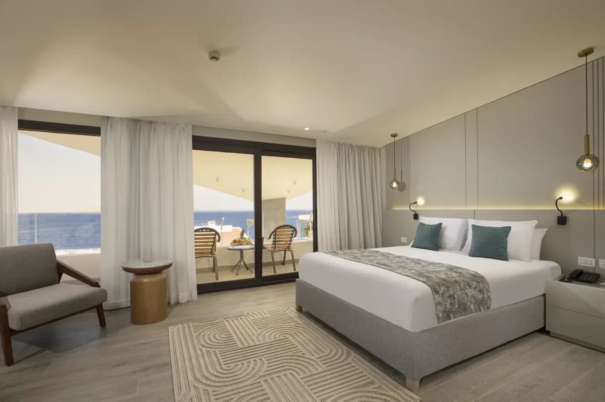 46 м2, две спальни (одна с кроватью размера king-size + вторая с двумя односпальными кроватями), ванная комната, балкон/террасаFamily 3 Bedroom Sea View Rooms