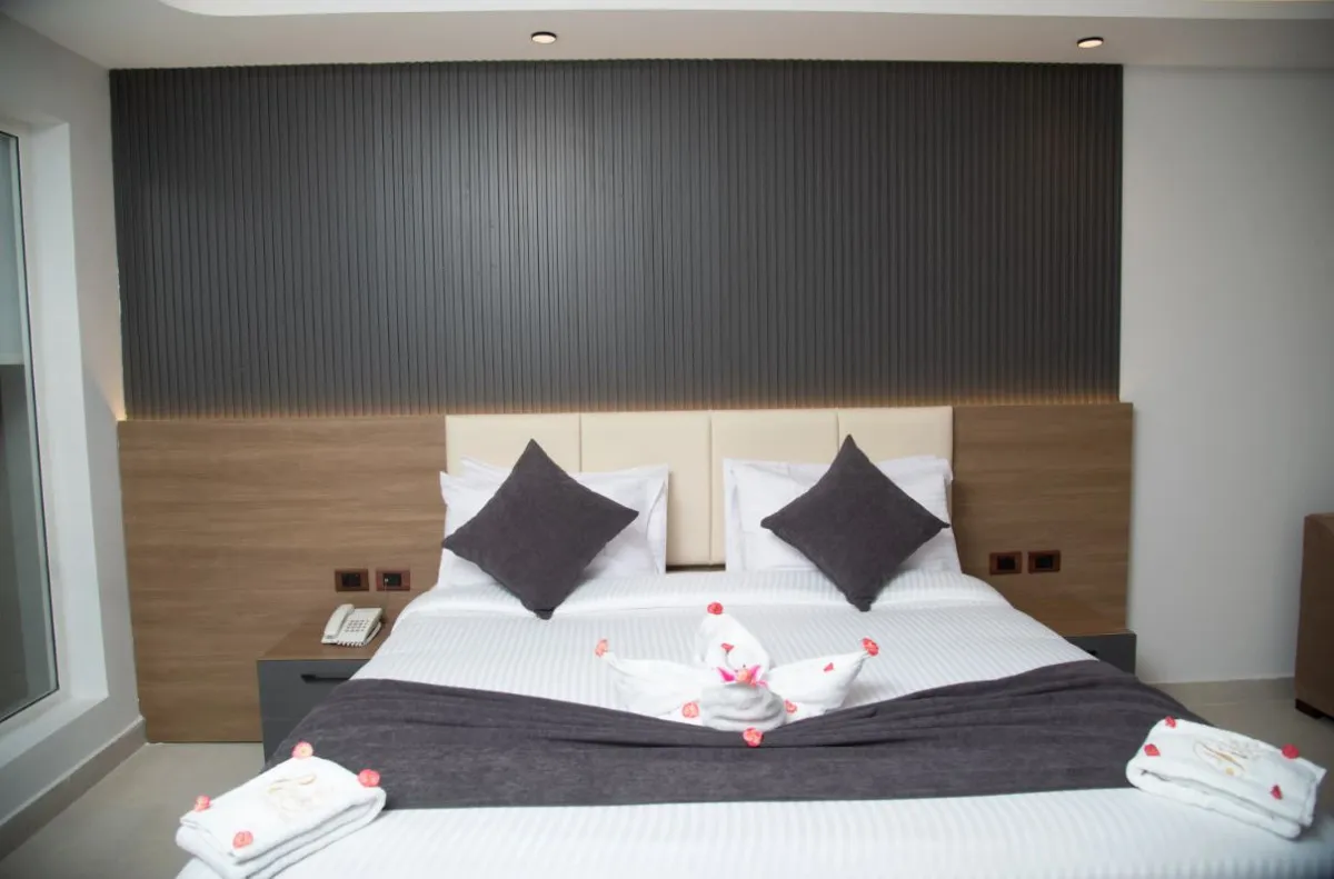 95 м2, три комнаты, в одной комнате – двуспальная кровать, в двух других комнатах – две односпальные кровати, терраса или балкон