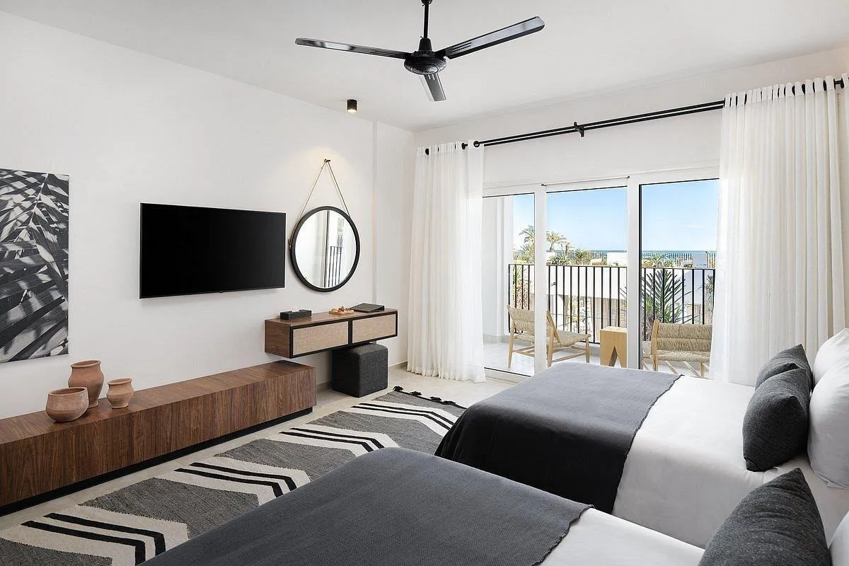 200 м2, люкс с двумя спальнями, одной кроватью king-size, двумя кроватями queen-size, гостиной, мини-кухней, двумя ванными комнатами, балконом, небольшим бассейном, видом на море, услугами дворецкого и доступом в приватный лаундж Suites. Максимальное количество гостей: 6.