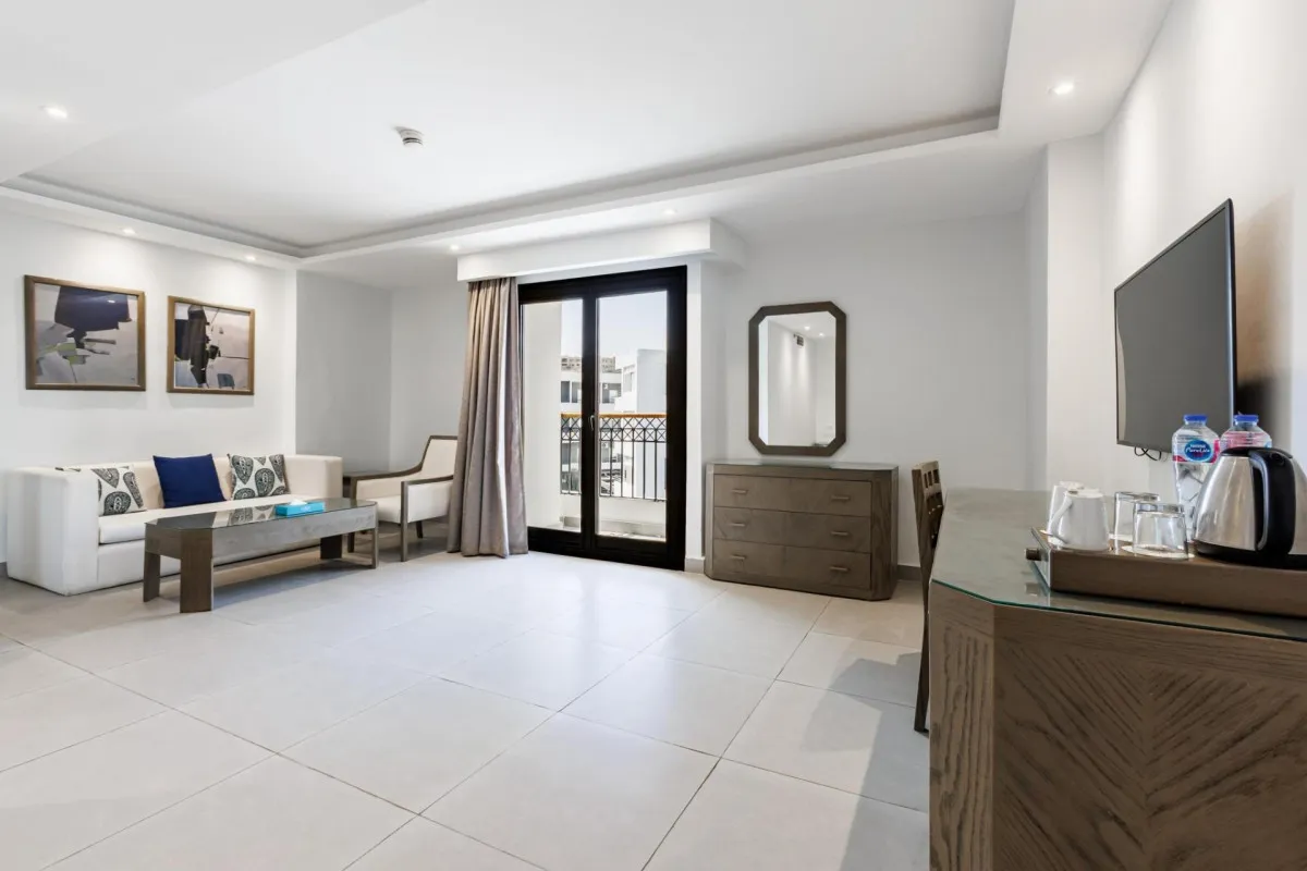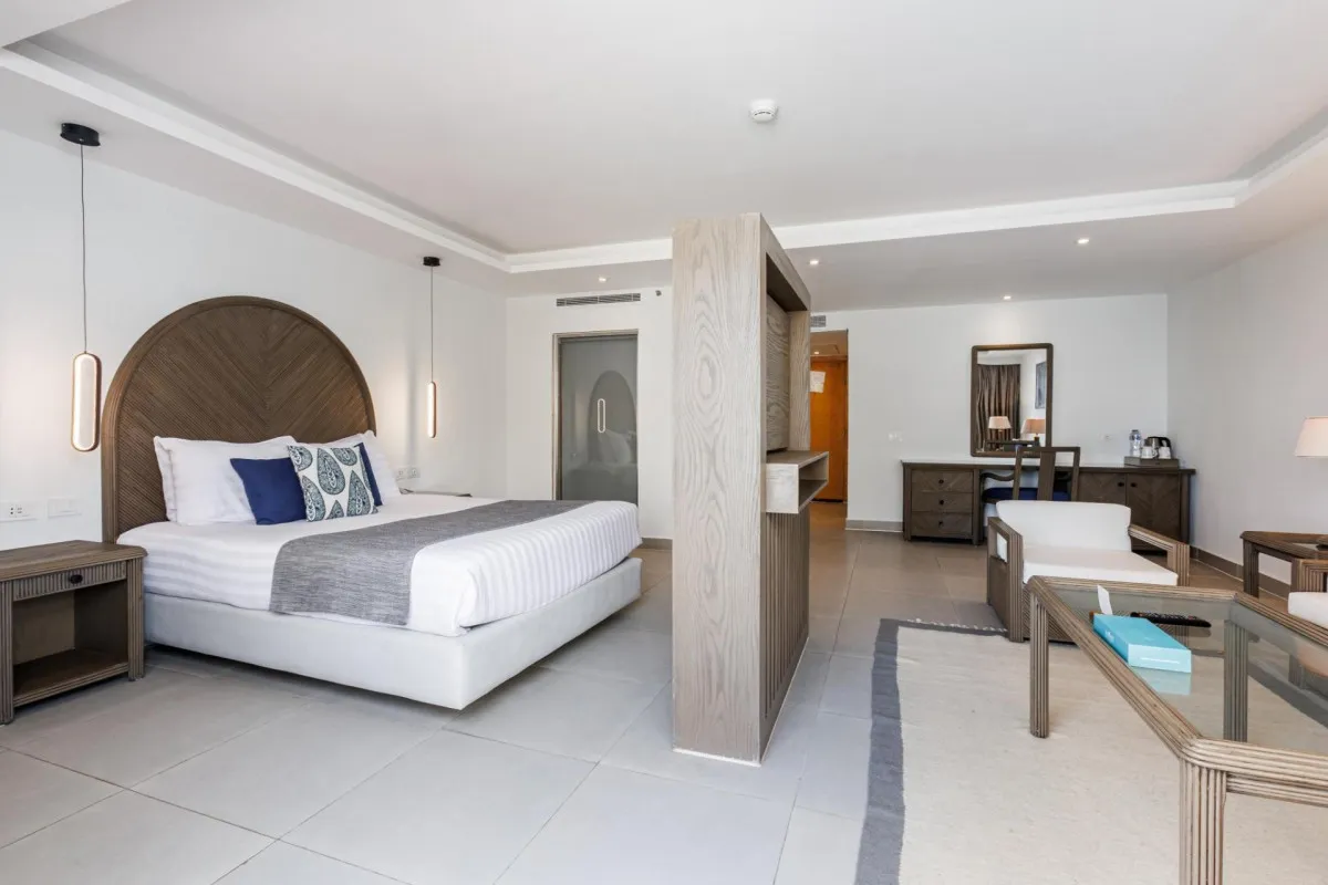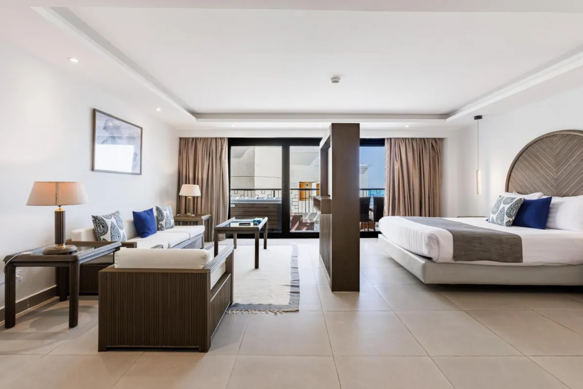 48 м2. В номере спальня с двуспальной кроватью queen-size, гостиная с 2 софами и столом, есть балкон. Вид на пляж. Размещение: 4 человекаPremium Room (Sea View)