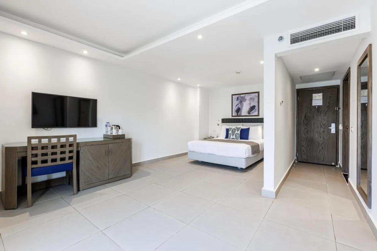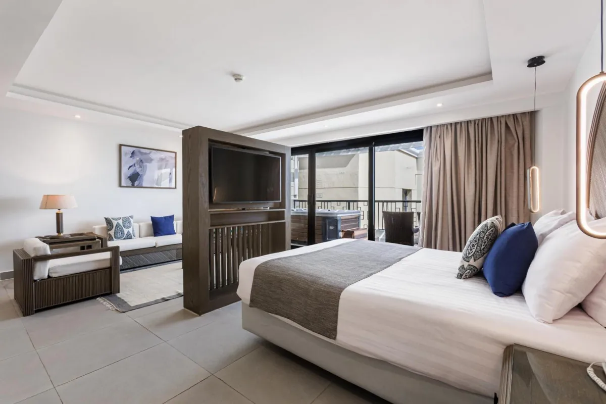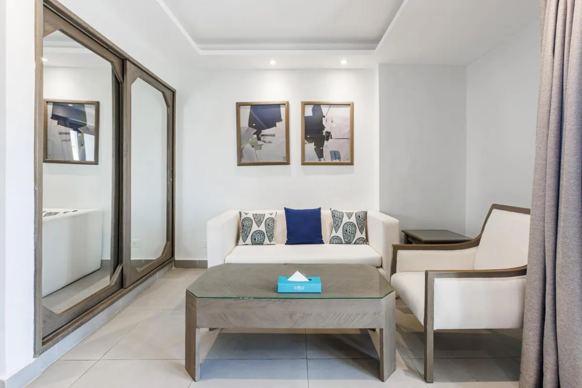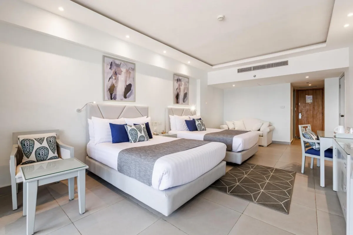 48 м2. В номере спальня с двуспальной кроватью queen-size, гостиная с 2 софами и столом, есть балкон. Вид на пляж. Размещение: 4 человекаPremium Room (Sea View)