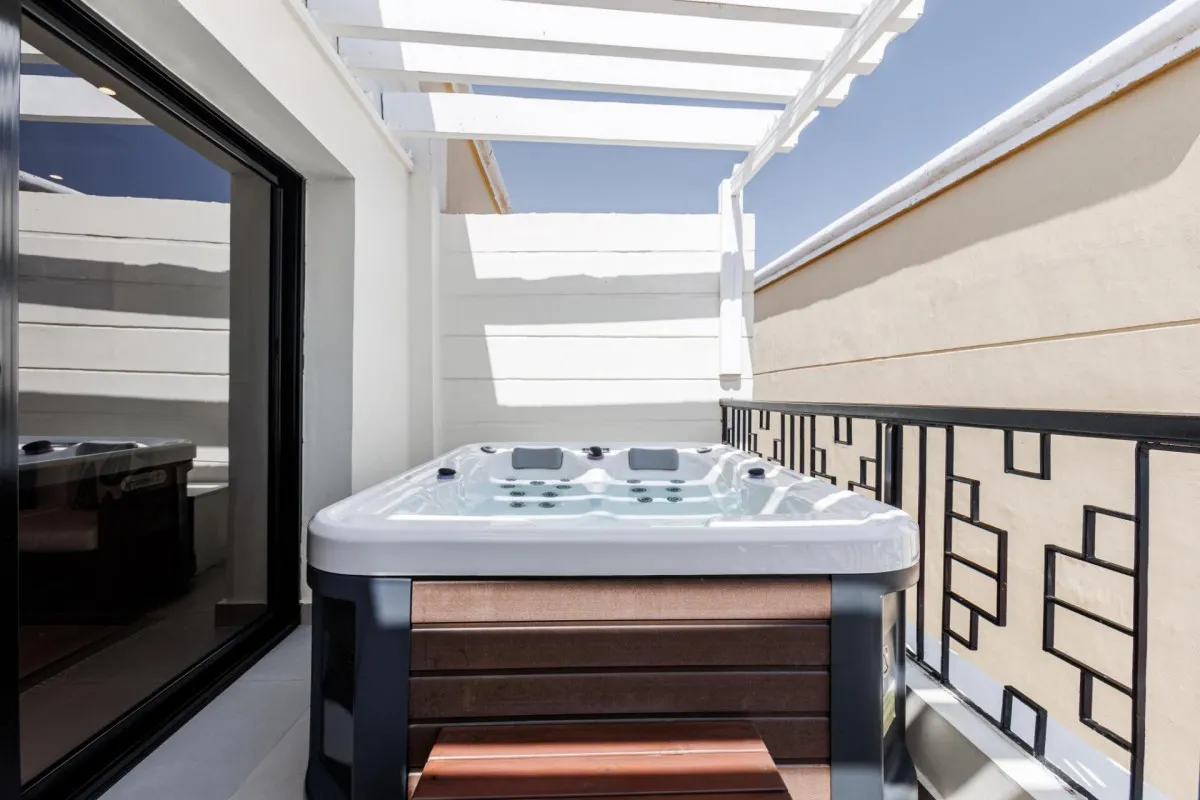 90 м2. В номере 2 отдельные спальни: 1 спальня: с двуспальной кроватью queen-size, 2 спальня: с 2 раздельными кроватями. Есть гостиная с софой, креслами и столом, а также с кухонным уголком и большим обеденным столом на 6 персон. Балкон. Вид на море. Размещение: 5 человекMaster Suite