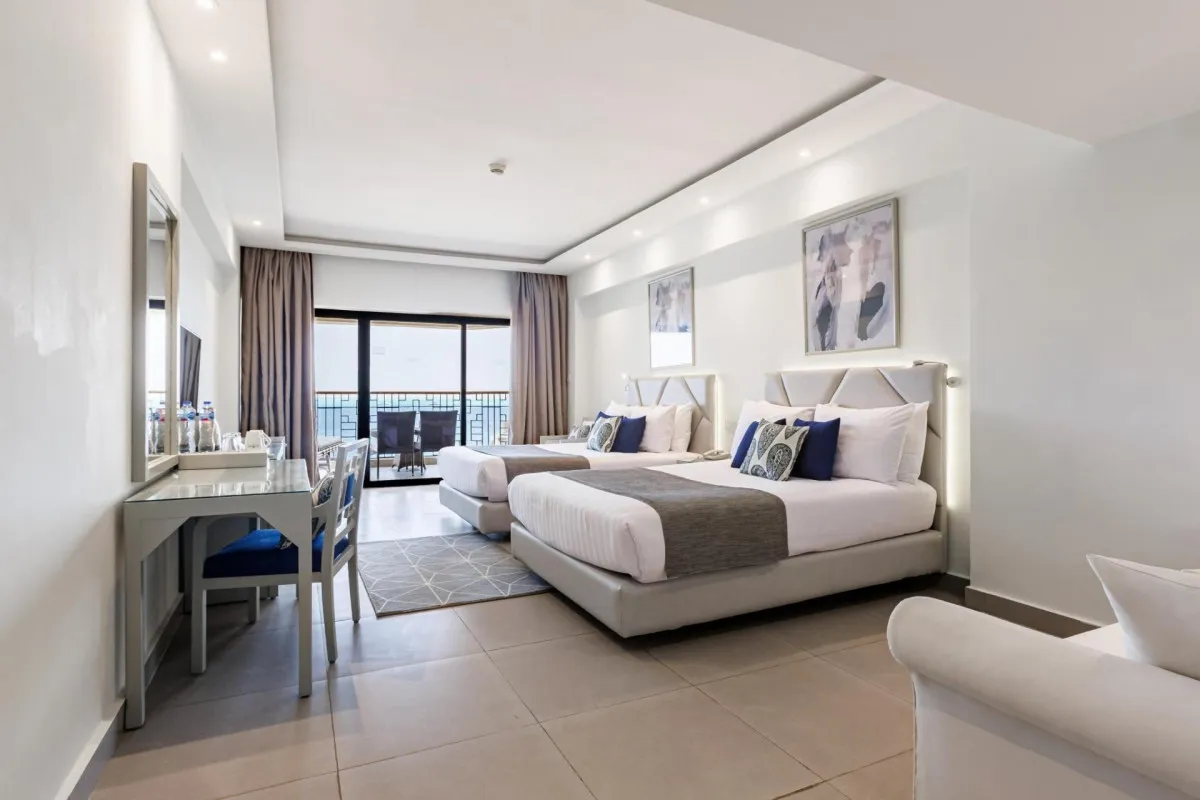 Удобное расположение позволяет за 10 минут добраться до городского центра, а трансфер из международного аэропорта Хургады займёт всего 14 минут. Курорт предлагает не только безупречный отдых, но и отличные возможности для проведения мероприятий — от деловых встреч до свадебных торжеств на фоне морского пейзажа.