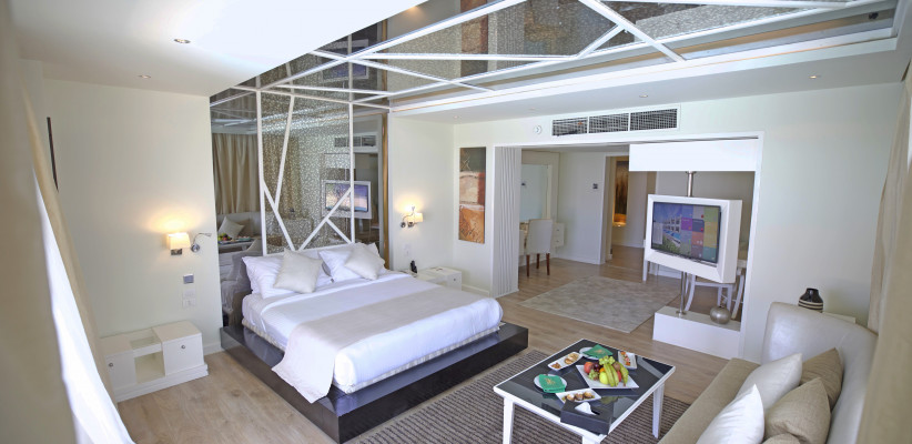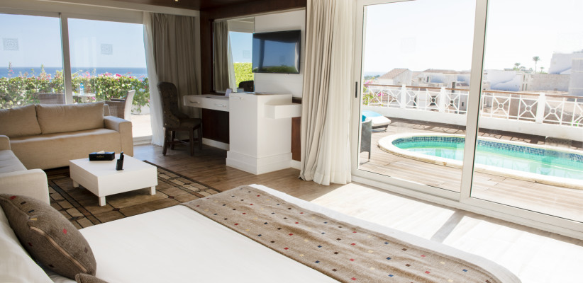 60 м2, спальня с кроватью king-size, лаундж-зона, гардеробная, ванная комната с душем, гидромассажной ванной и двумя раковинами, терраса с прямым выходом к общему бассейну. Максимальное количество гостей: 3 взрослых и 1 ребенок.Jacuzzi Suite – Posh Club