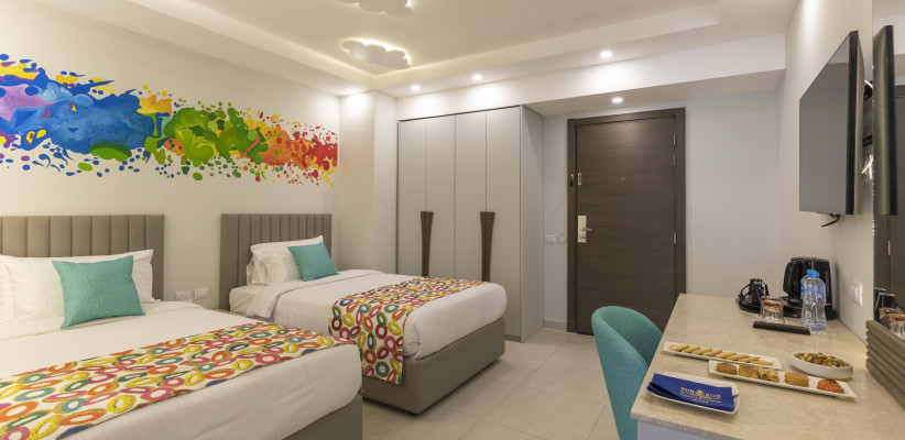- спальня с односпальными кроватями (Family Jacuzzi Suite)