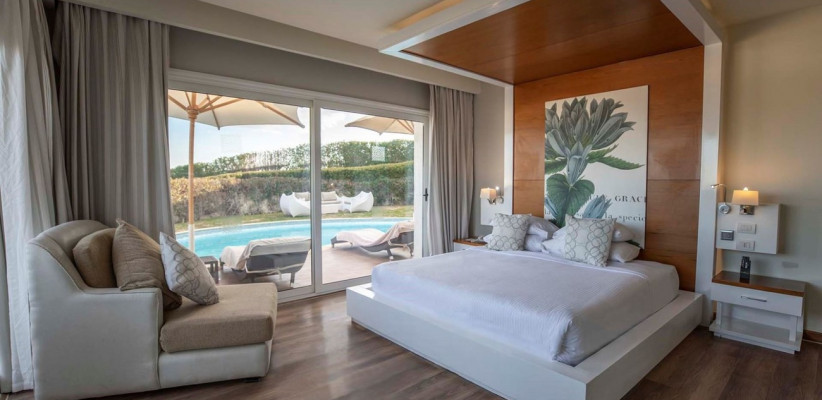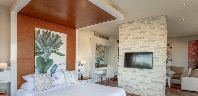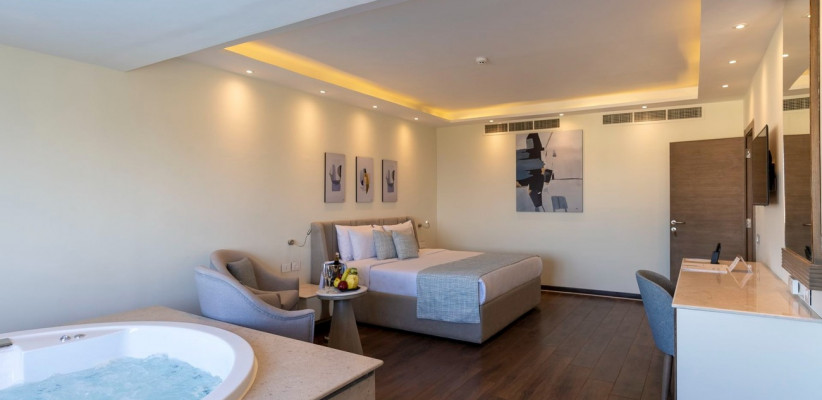 60 м2, спальня с кроватью king-size, лаундж-зона, гардеробная, ванная комната с душем, гидромассажной ванной и двумя раковинами, терраса с прямым выходом к общему бассейну. Максимальное количество гостей: 3 взрослых и 1 ребенок.Jacuzzi Suite – Posh Club