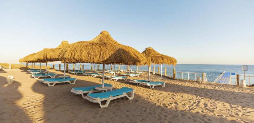 Пляж на территории отеля Sunrise Remal Beach. Бесплатный трансфер на автобусе до пляжа.