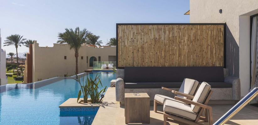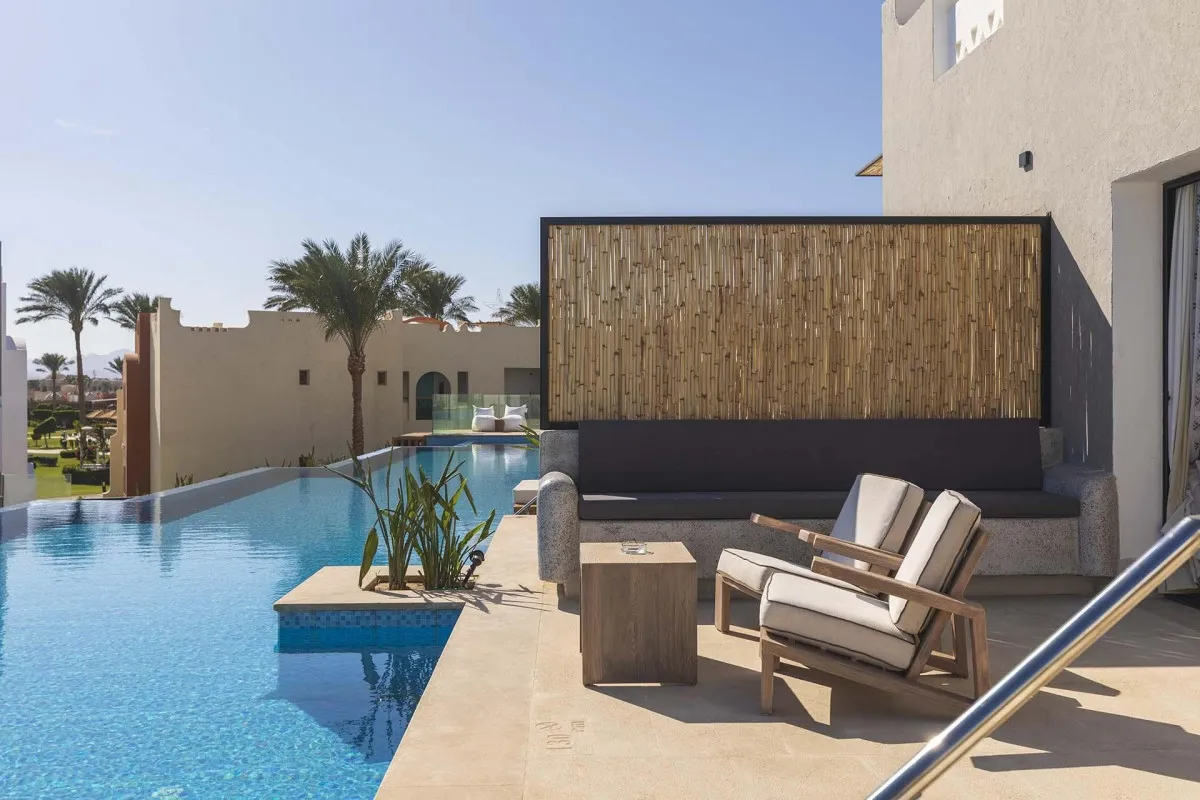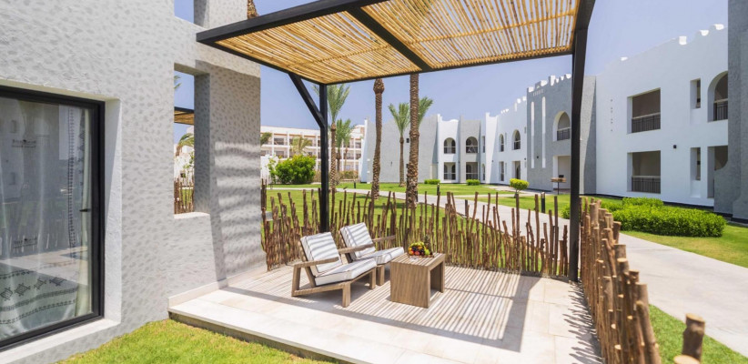 42 м2, вид на море/ частичный вид на море/ вид на бассейн/ вид на сад, спальня с большой двуспальной или двумя односпальными кроватями, ванная комната с душем, терраса/ балконJunior Garden Suite