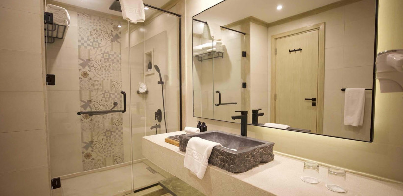 35 м2, вид на море/ частичный вид на море/ вид на бассейн/ вид на сад, спальня с большой двуспальной или двумя односпальными кроватями, ванная комната с душем, терраса/ балконDeluxe