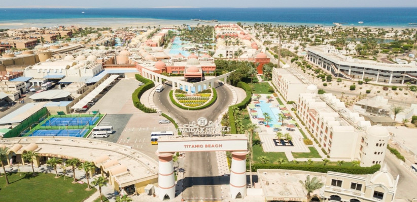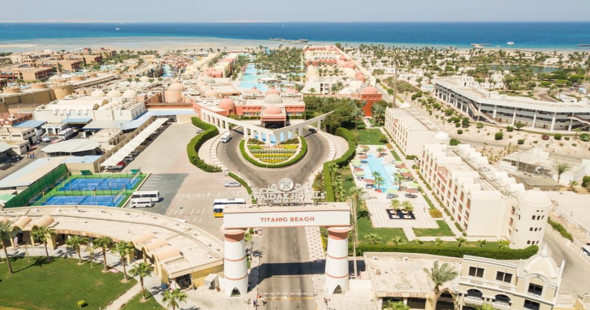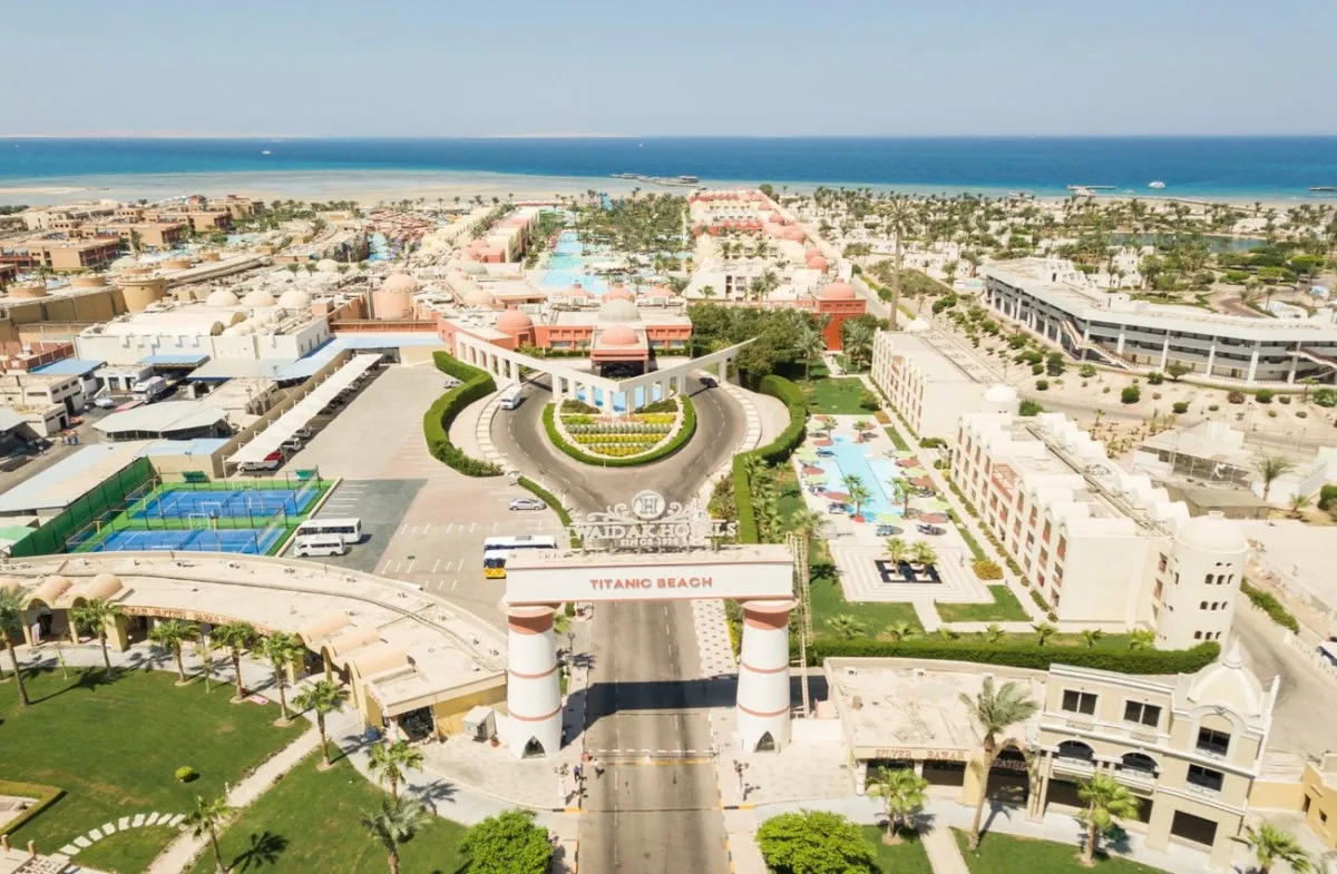 Отель Titanic Palace Resort находится на первой береговой линии Красного моря, в районе Сахл-Хашиш. Он имеет общую инфраструктуру с соседним отелем Titanic Beach Spa And Aquapark. Также Titanic Palace удобно расположен, примерно в 15 км от аэропорта Хургады и около 18 км от центра города.