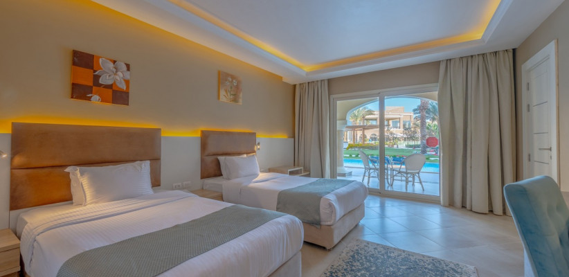 48 м2, спальня с двуспальной кроватью размера king-size или с двумя односпальными кроватями. Максимальное количество гостей: 2 или 4.Swim Up Rooms