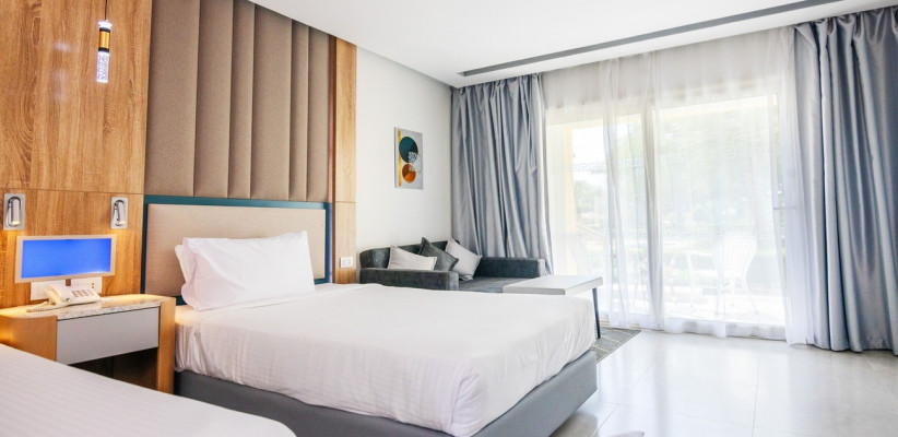- Собственный песчаный пляж на Красном море с прямой выход к пляжу.