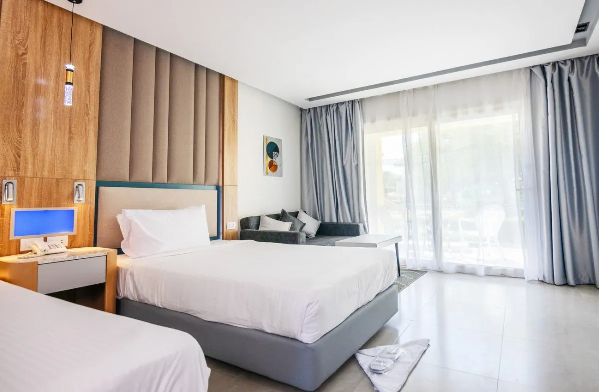 - Отель находится в туристической зоне Хургады, достаточно близко к аэропорту.
