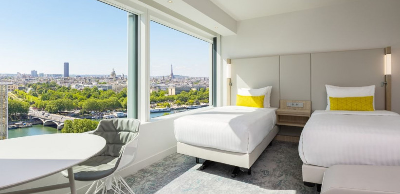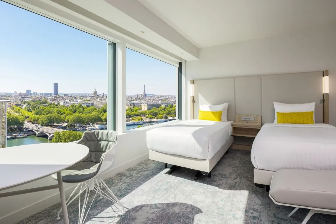 22-26 м2, вид на Эйфелеву башню, двуспальная кровать или две односпальные. Количество гостей: 2Family Eiffel Tower View