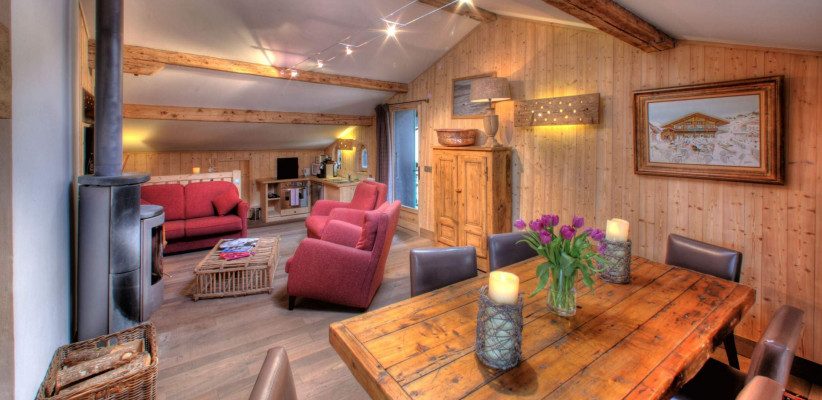75 м2, балкон с видом на горы и долину, спальня с двуспальной кроватью размера king-size, просторная гостиная с камином, обеденная зона, гардеробная. Максимальное количество гостей: 2 взрослых + 2 детей.Chalet Les Allobroges