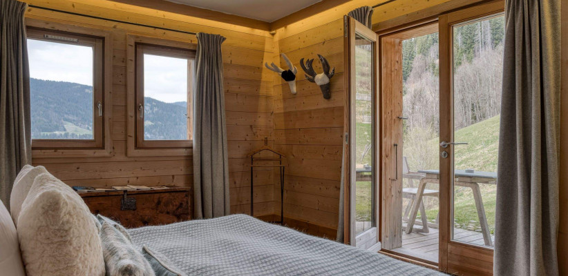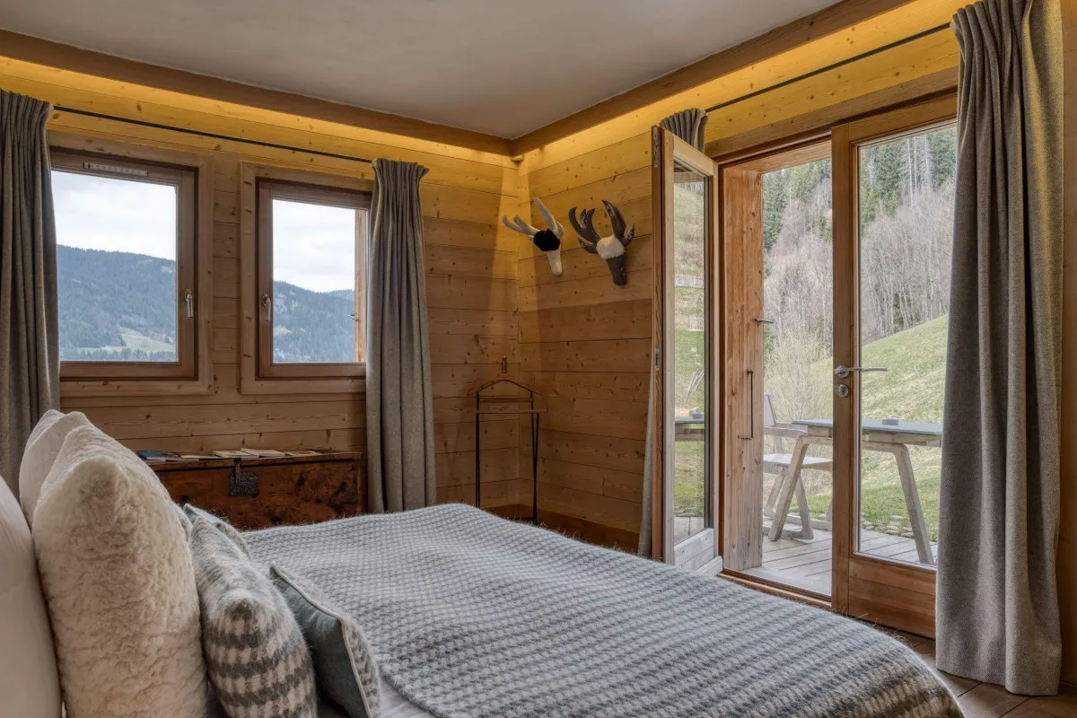 балкон с видом на горы и долину, спальня с двуспальной кроватью, просторная гостиная с дровяной печью, обеденная зона, полностью оборудованная кухня, гардеробная, шале занимает три этажа. Максимальное количество гостей: 8.
