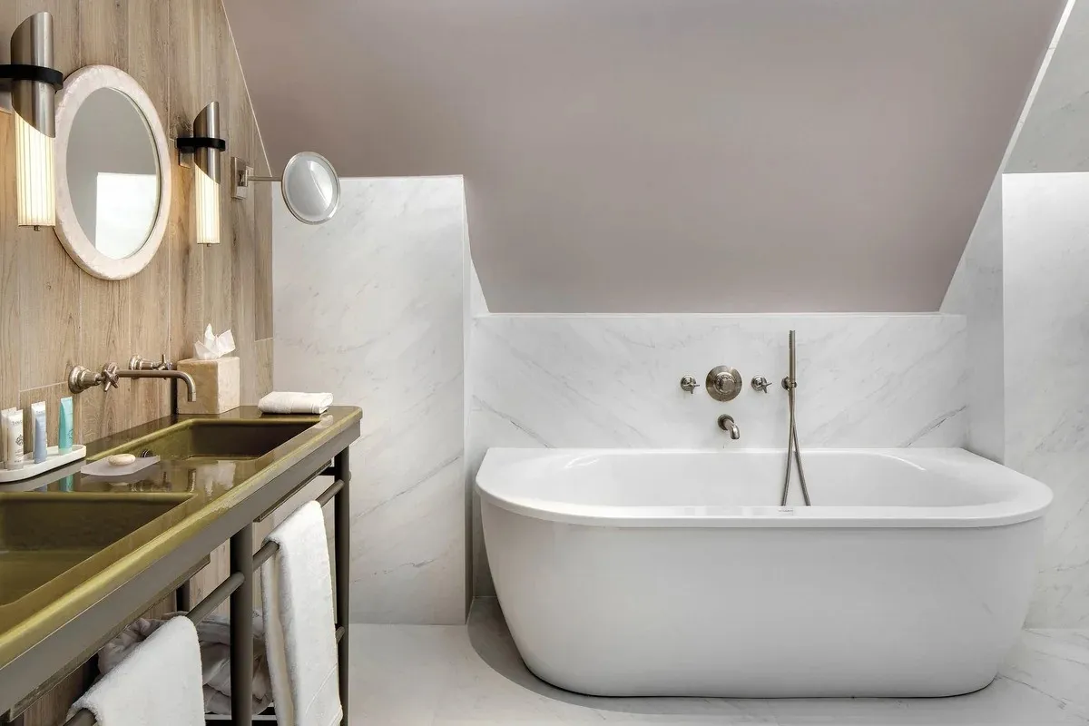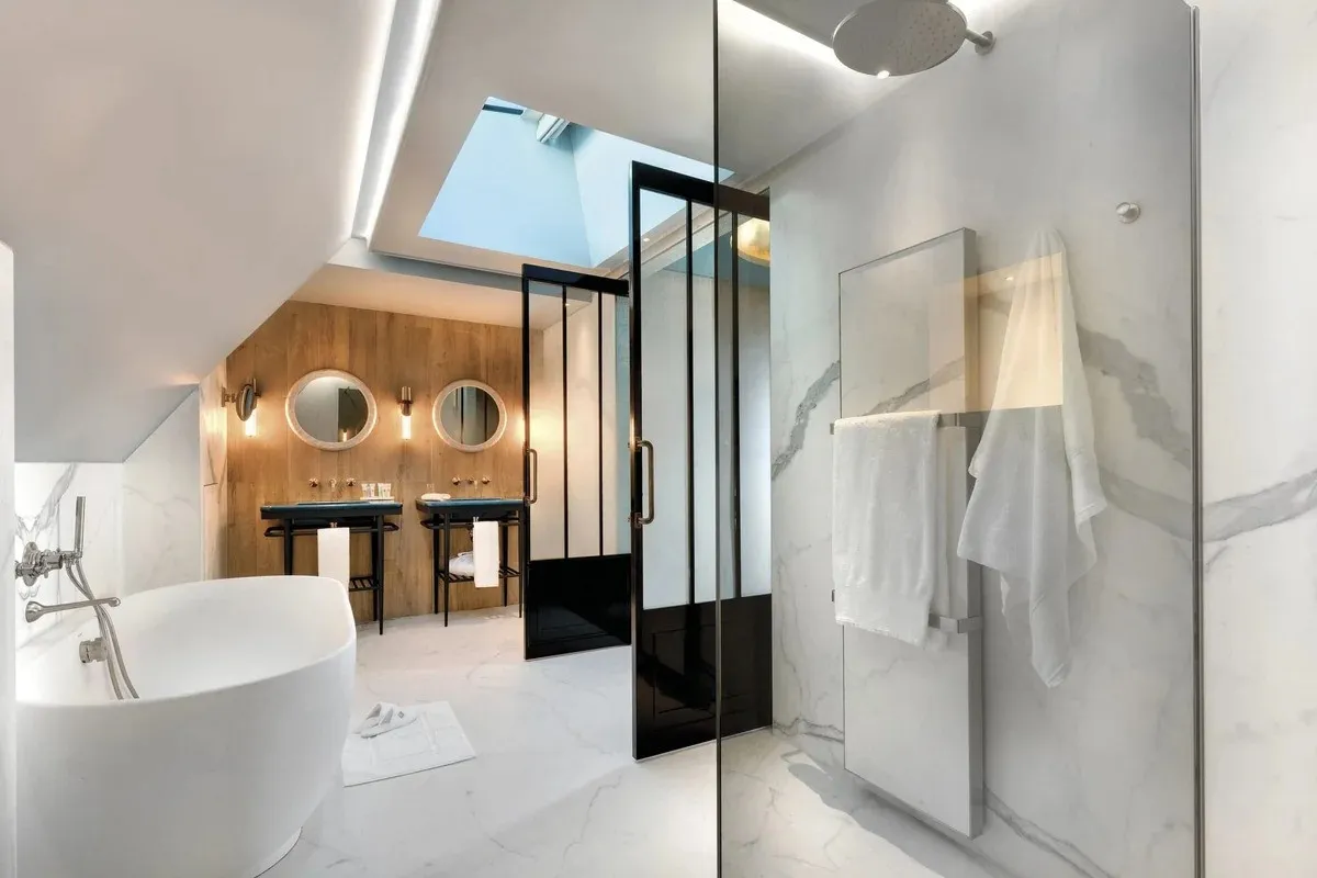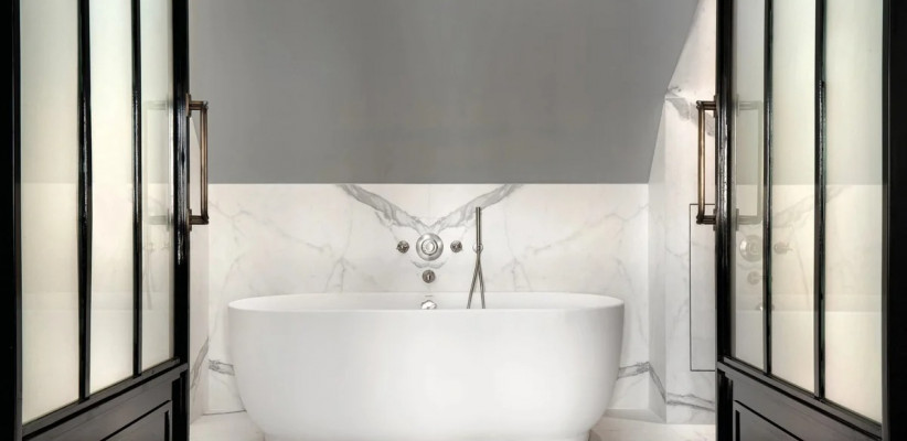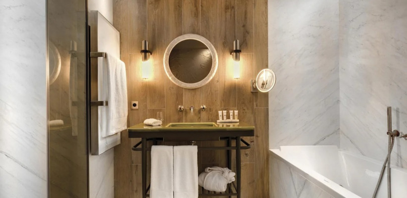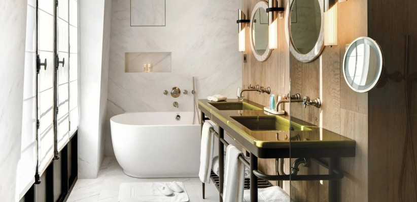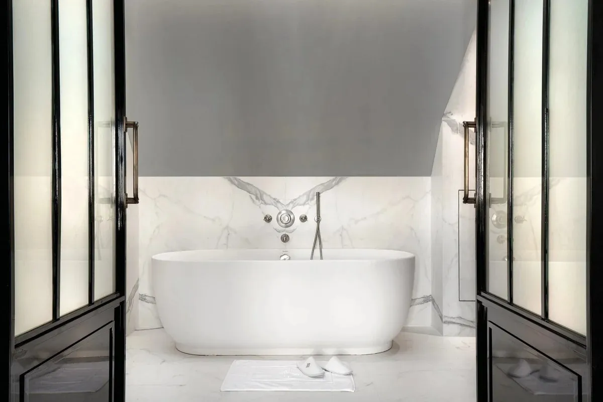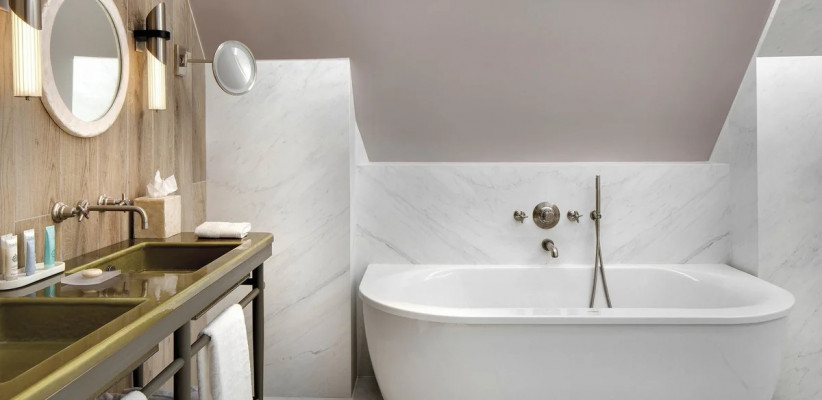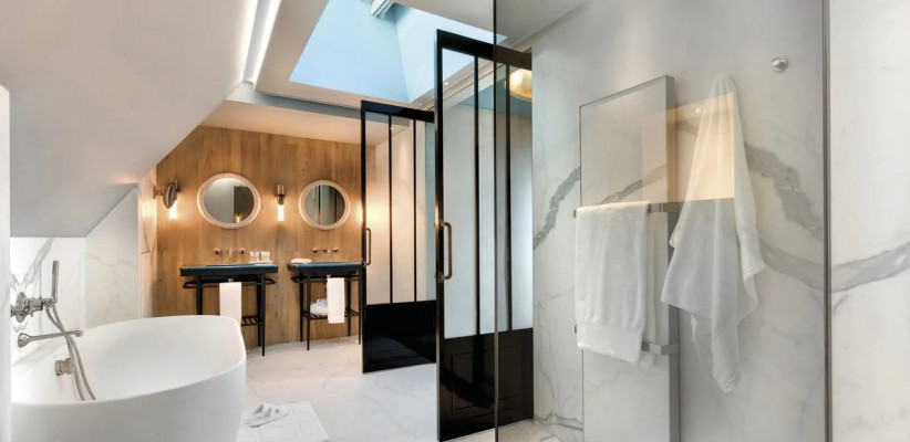 - В La Demeure Montaigne есть уникальные люксы (например, Eiffel Suite), где можно принимать ванну, любуясь главной достопримечательностью Парижа прямо из окна.
