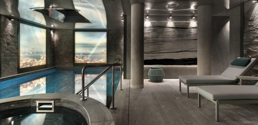 - Редкость для центра Парижа – на территории полноценный спа-центр с большим бассейном, джакузи и сауной, оформленный натуральным швейцарским камнем.