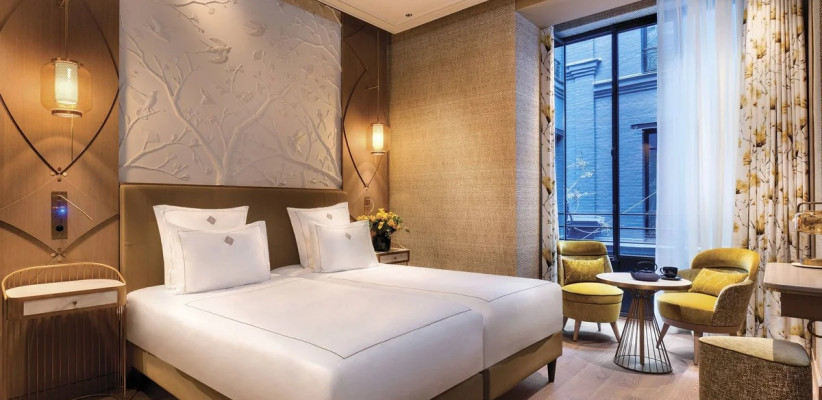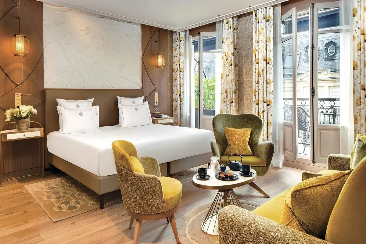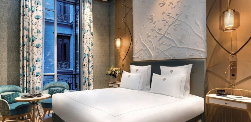 La Demeure Montaigne – это настоящая галерея современного искусства. Туристов встречают обои от Jean Paul Gaultier, уникальные люстры из перьев и инсталляции из стекла ручной работы. Каждая деталь интерьера подчеркивает французское искусство жизни – Art De Vivre.