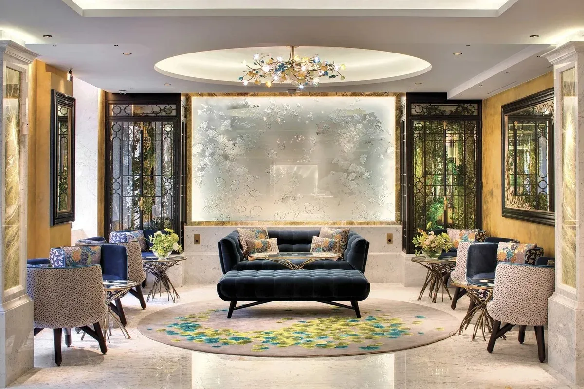 - Огромная люстра из перьев в лобби и фрески с цветочными мотивами.