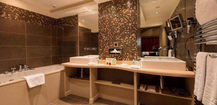 Особое внимание уделено отдыху и восстановлению. Просторный Clarins Spa площадью около 400 м2 включает подогреваемый крытый бассейн, джакузи, хаммам, сауны, фитнес-зал и массажные кабинеты. Здесь можно пройти процедуры по уходу за лицом и телом, расслабиться после катания и полностью восстановить силы.