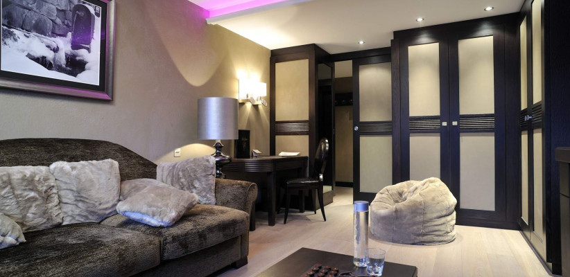 В отеле 85 номеров, люксов и апартаментов, оформленных в савойском стиле с элементами современной роскоши. Интерьеры выполнены в теплых тонах, с натуральным деревом и мягким освещением, что создает уютную альпийскую атмосферу.