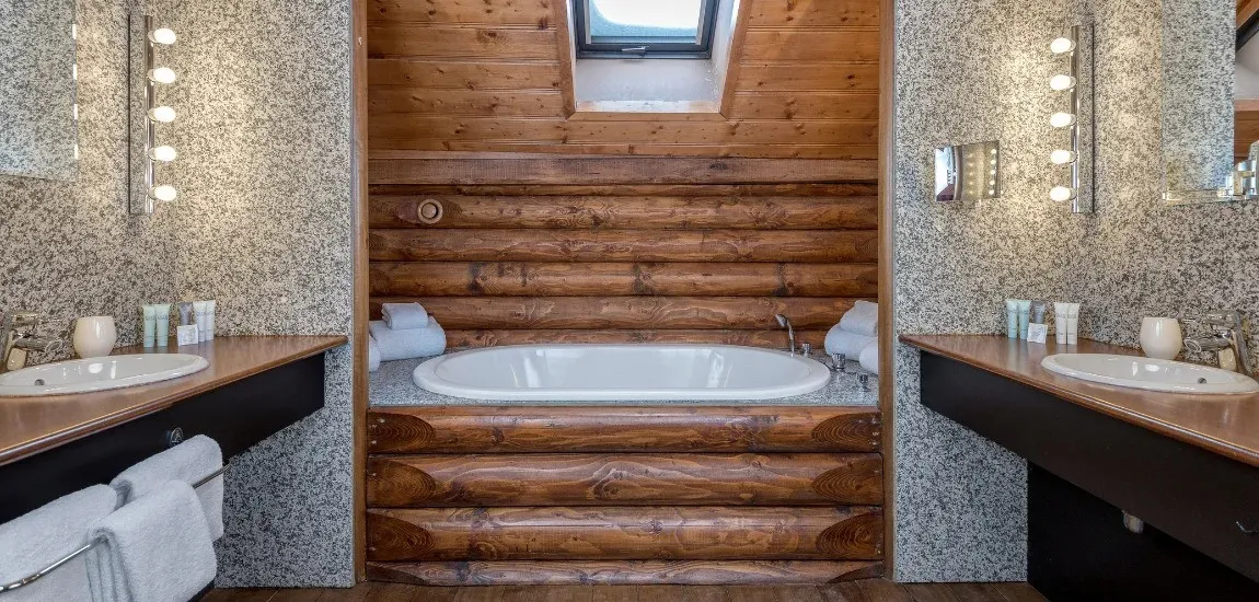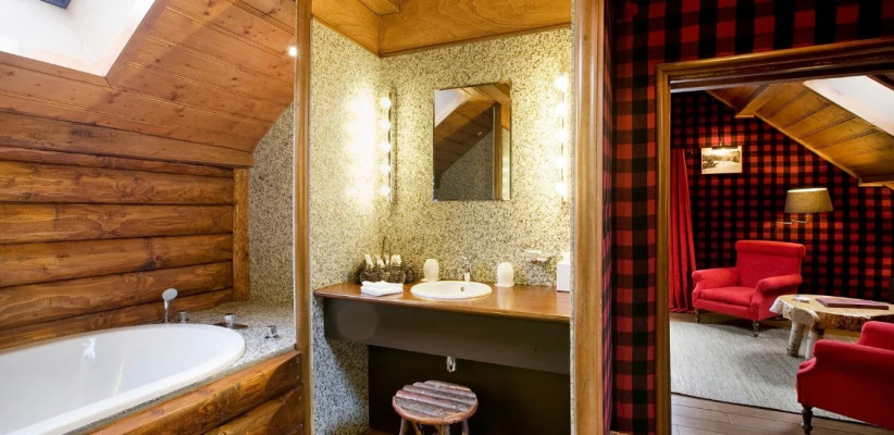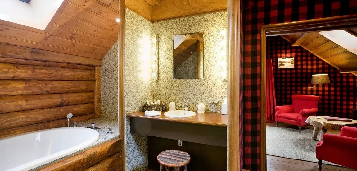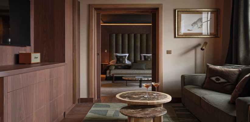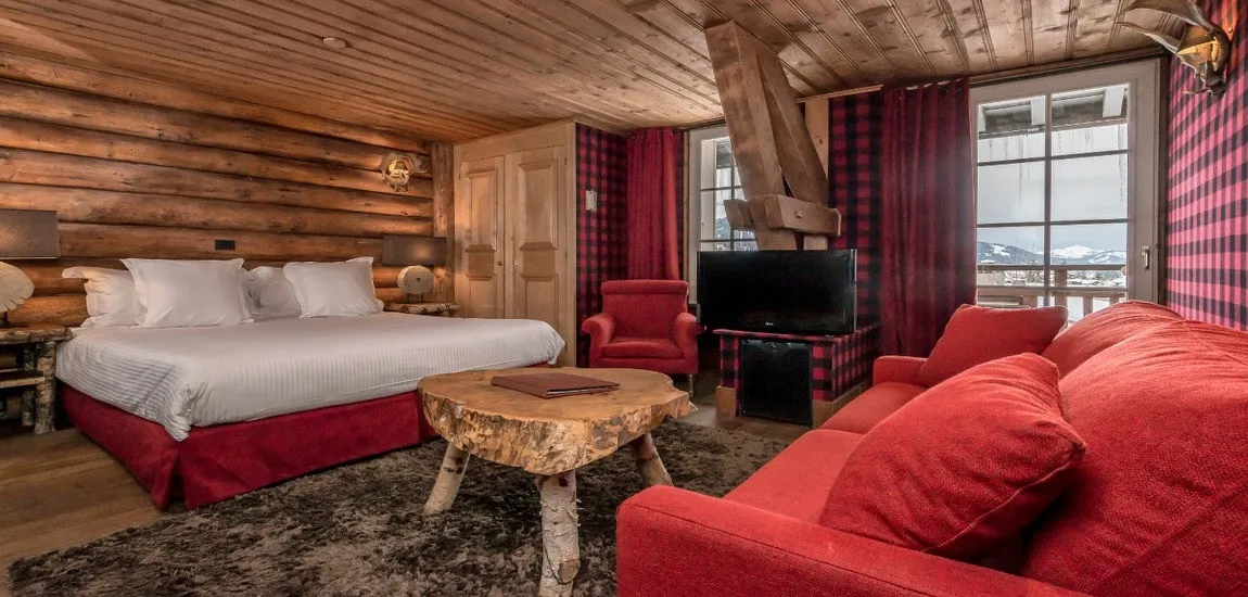 50 м2, балкон с видом на деревню или горы, спальня с двуспальной кроватью размера king-size, гостиная с камином, отдельный гардероб. Максимальное количество гостей: 2.Deluxe Suite