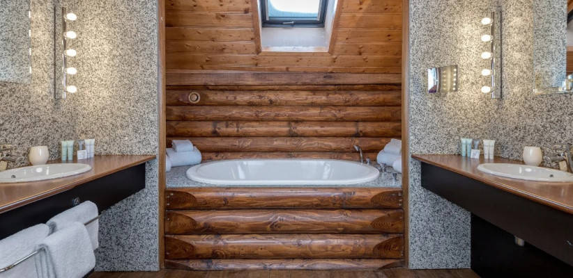 73 м2, с видом на горы, спальня с двуспальной кроватью, гостиная с камином, гардеробная. Максимальное количество гостей: 2.