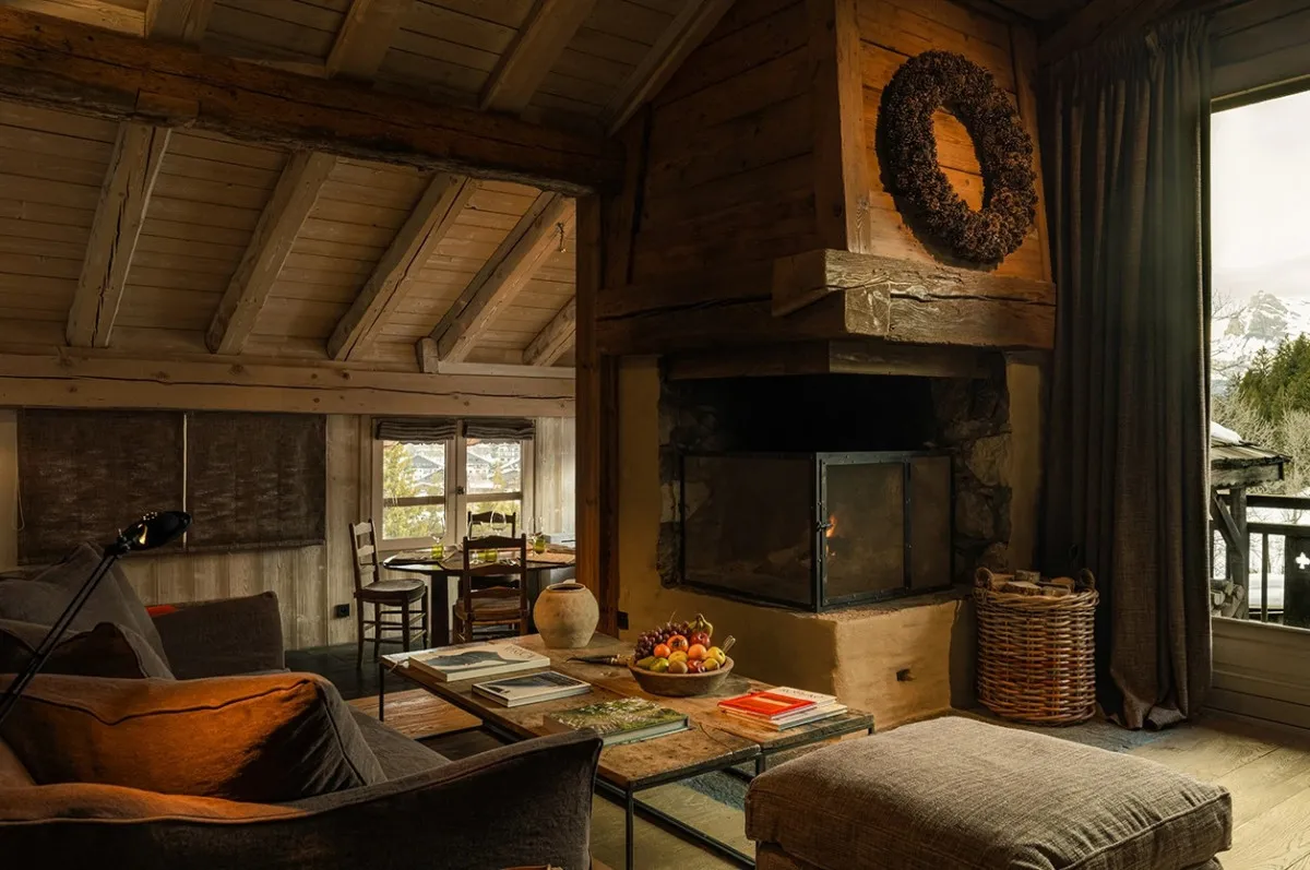 - Проживание в отдельном шале с альпийским интерьером, камином и натуральными материалами.