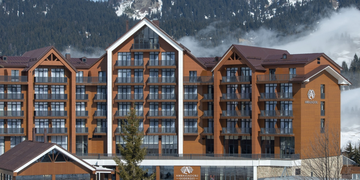 Отель Ambassadori Goderdzi 5* расположен в Аджарском регионе, на юго-западе Грузии, в центре горнолыжного курорта Годердзи, напротив горнолыжных склонов и пешеходных троп. Расположен на высоте 2027 м над уровнем моря и располагает собственной оздоровительной зоной с саунами, бассейном, массажным кабинетом, террасой с панорамным видом на горы.