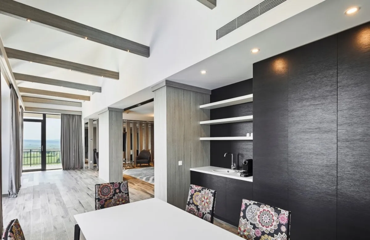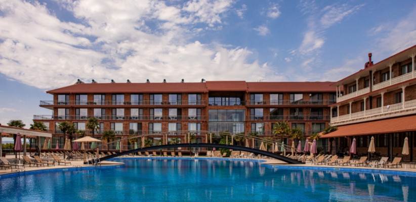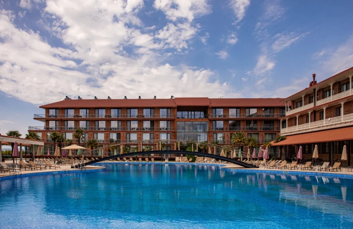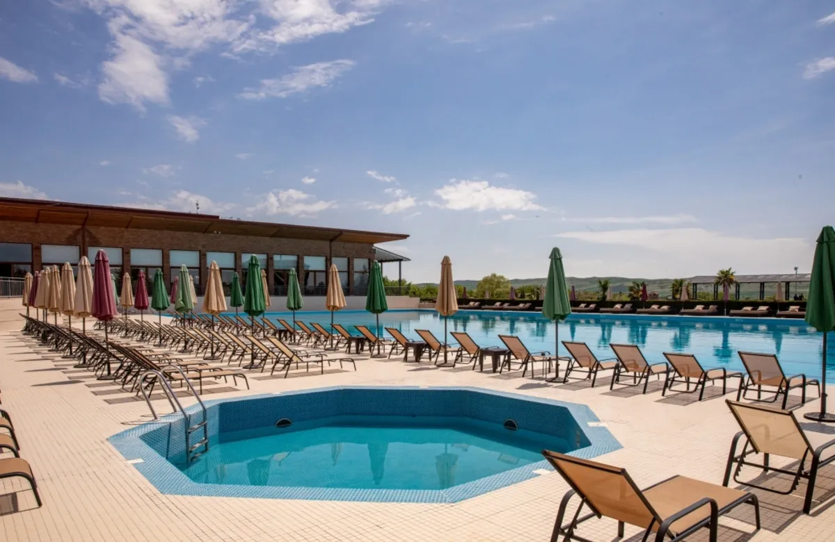 Ambassadori Kachreti Golf Resort – крупный курортный комплекс в винодельческом регионе Кахетия, расположенный среди живописных холмов и виноградников. Отель предлагает просторные номера, развитую инфраструктуру для отдыха и спорта, включая гольф-поле, бассейны, СПА-центр и рестораны грузинской и европейской кухни. Курорт идеально подходит для активного отдыха, семейных поездок, винных туров и проведения мероприятий. Расстояние до международного аэропорта Тбилиси составит около 75 км.