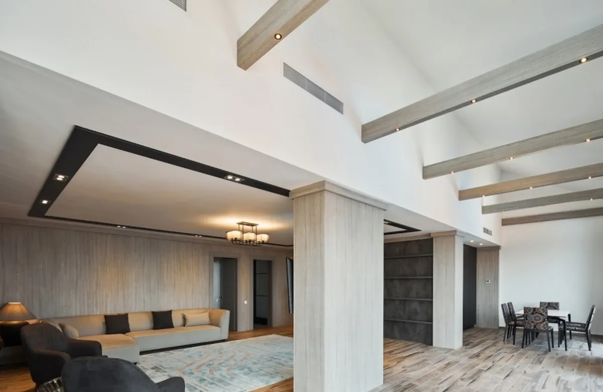 161 м2, две двуспальные кровати, диван, гостиная, обеденная зона, рабочая зона, терраса. Количество гостей: 6.