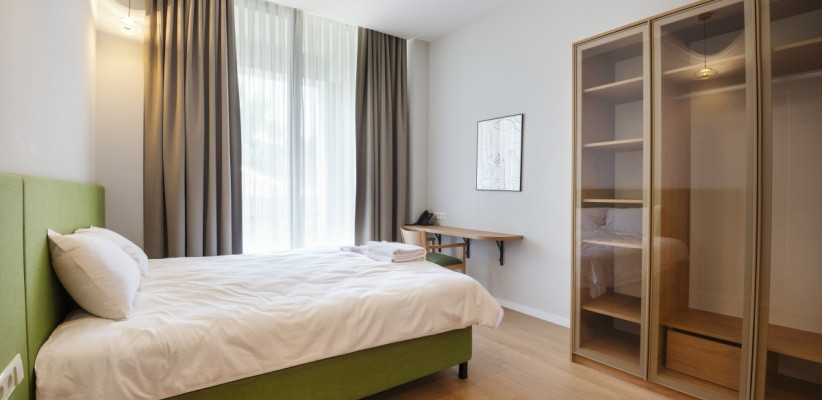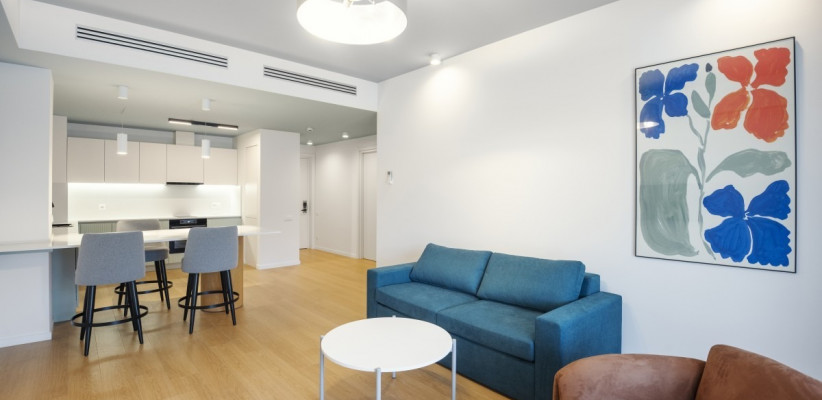 двуспальная кровать, диван, гостиная или гостиная зона, кухнонная зона, обеденная зона, рабочая зона, балкон. Количество гостей: 3.