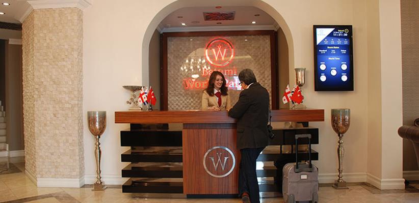 Отель Batumi World Palace гордится своим расположением в самом центре древнего города Батуми и поэтому может стать не только местом остановки во время пляжного отдыха, но и отправной точкой для знакомства с этим красивым городом. Построенная в классическом стиле более 200 лет назад и отреставрированная в 2012 году, теперь эта гостиница по праву считается одной из самых модных в Батуми. Услуга трансфера избавит от необходимости добираться от аэропорта или ж/д вокзала на общественном транспорте. Здесь есть все удобства, ожидаемые от отеля с категорией 4 звезды.