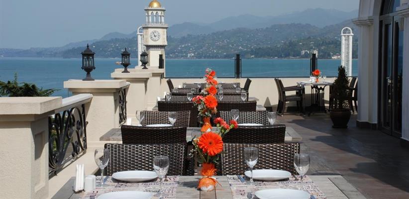 Гордость отеля – ресторан с открытой верандой, откуда открывается панорамный вид на черноморское побережье. А те, кто желает уединиться, могут заказать еду прямо в номер. Благодаря наличию уютного конференц-зала на 50 мест, тут можно проводить небольшие семинары и переговоры.
