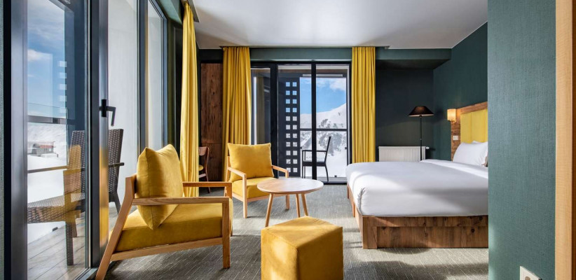 24-27 м2, балкон с видом на горы, спальня с двуспальной кроватью или с двумя односпальными, гостиная зона. Максимальное количество гостей: 2.Family Room