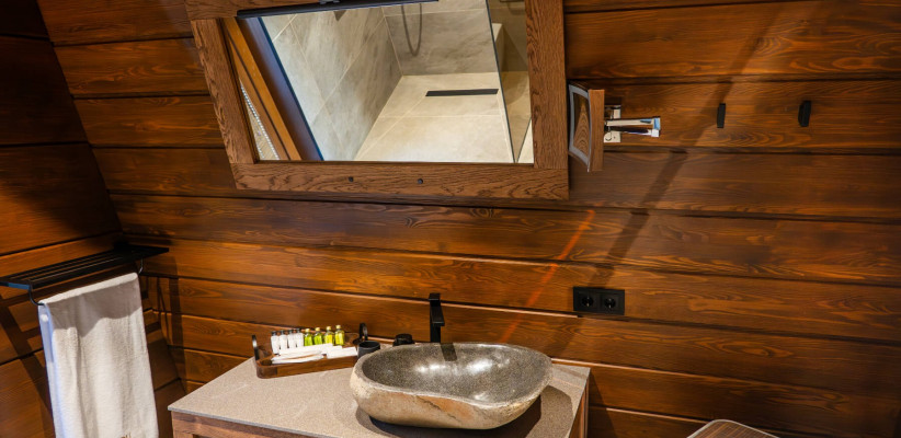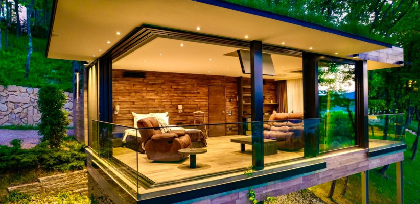 одноэтажное шале в лесной зоне, две спальни, гостиная, вид на лес и горы, террасаPremium Cottage