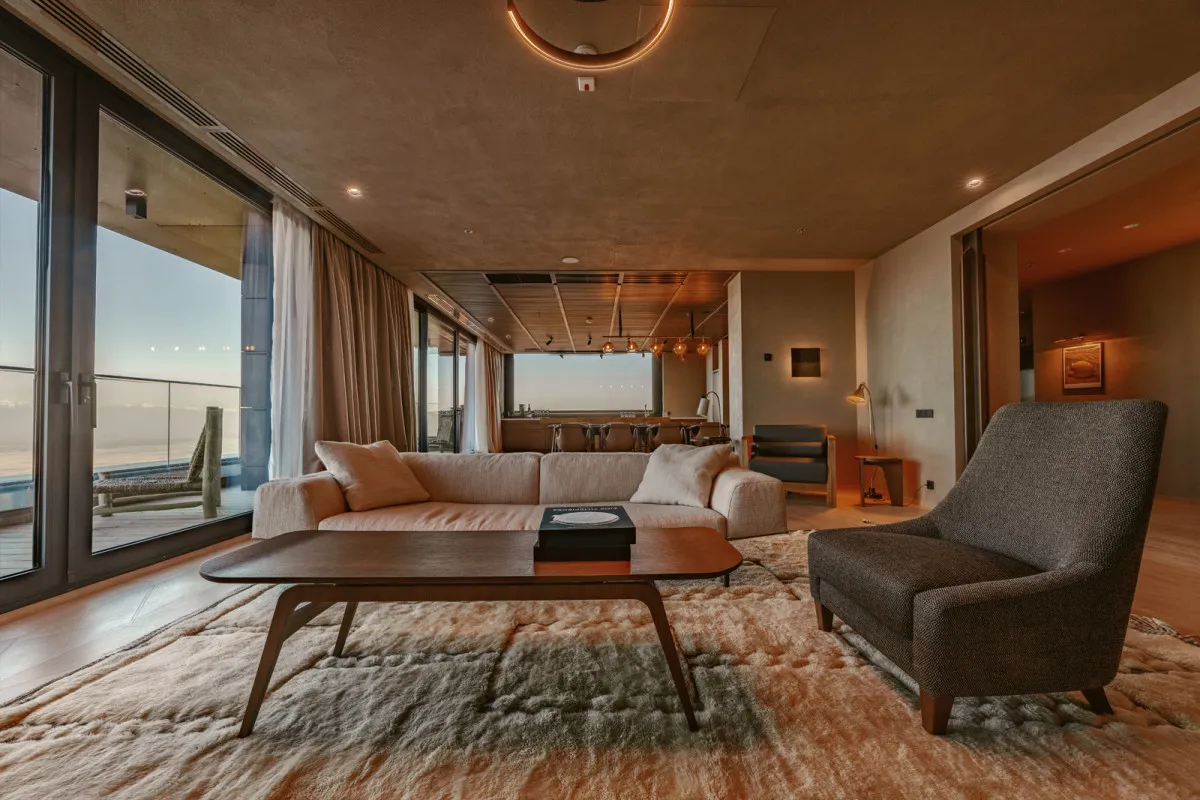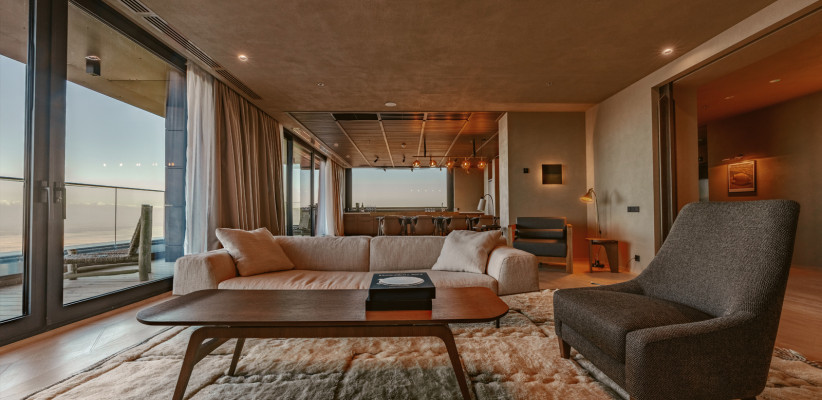 55 м2, мебелированный балкон с видом на горы, спальня с двуспальной кроватью, гостиная зона с диваном и креслами, рабочее место. Максимальное количество гостей: 2.Premium Suite/ Премиум сюит