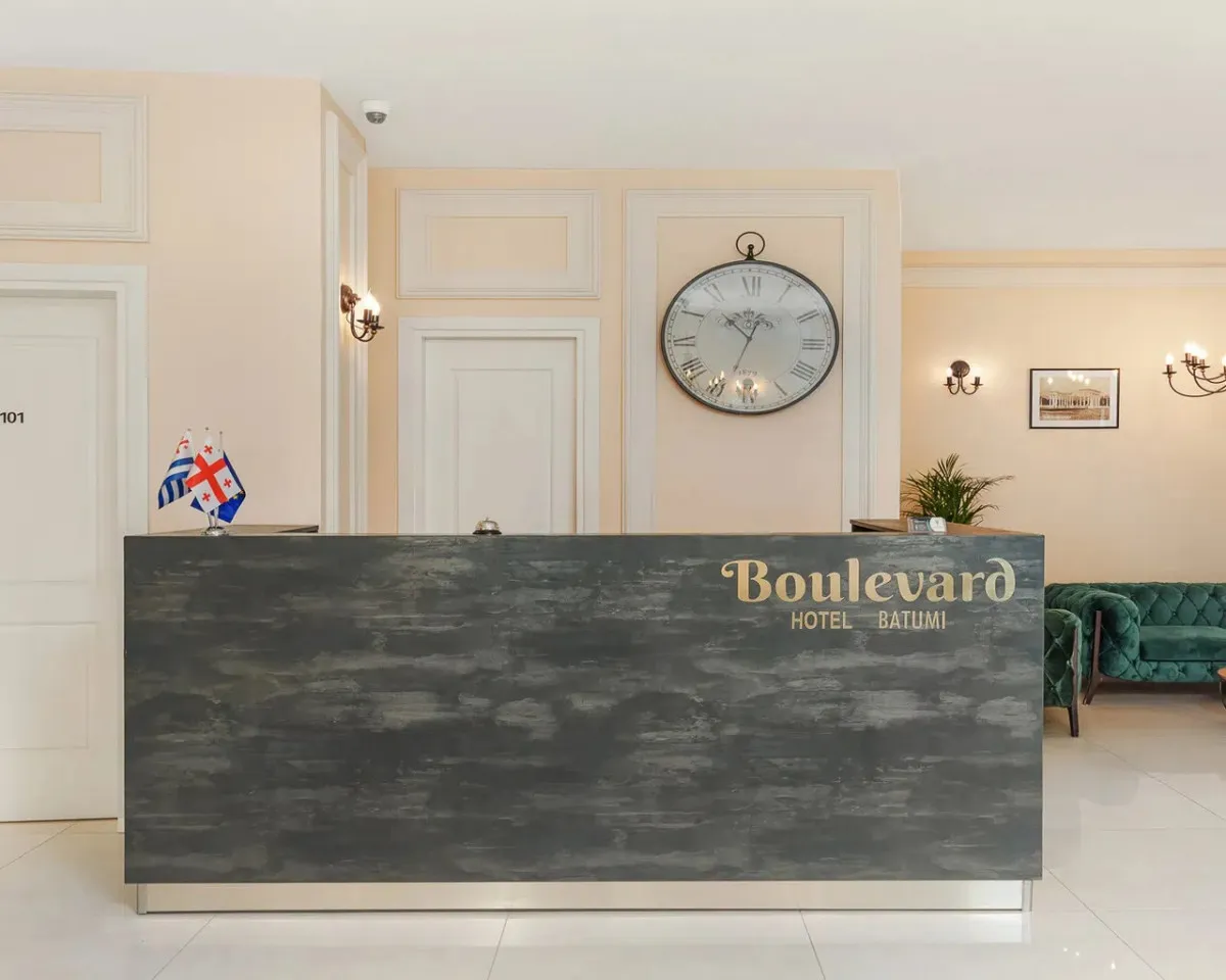 Boulevard Batumi расположен в самом сердце исторического Приморского бульвара Батуми, всего в нескольких минутах ходьбы от побережья Черного моря. Отель находится на одной из центральных улиц города, что делает его идеальной отправной точкой для знакомства с Батуми. В шаговой доступности расположены набережная, пляж, кафе и рестораны, а также ключевые достопримечательности города, включая площадь Европы, фонтан Нептуна и статую Медеи.