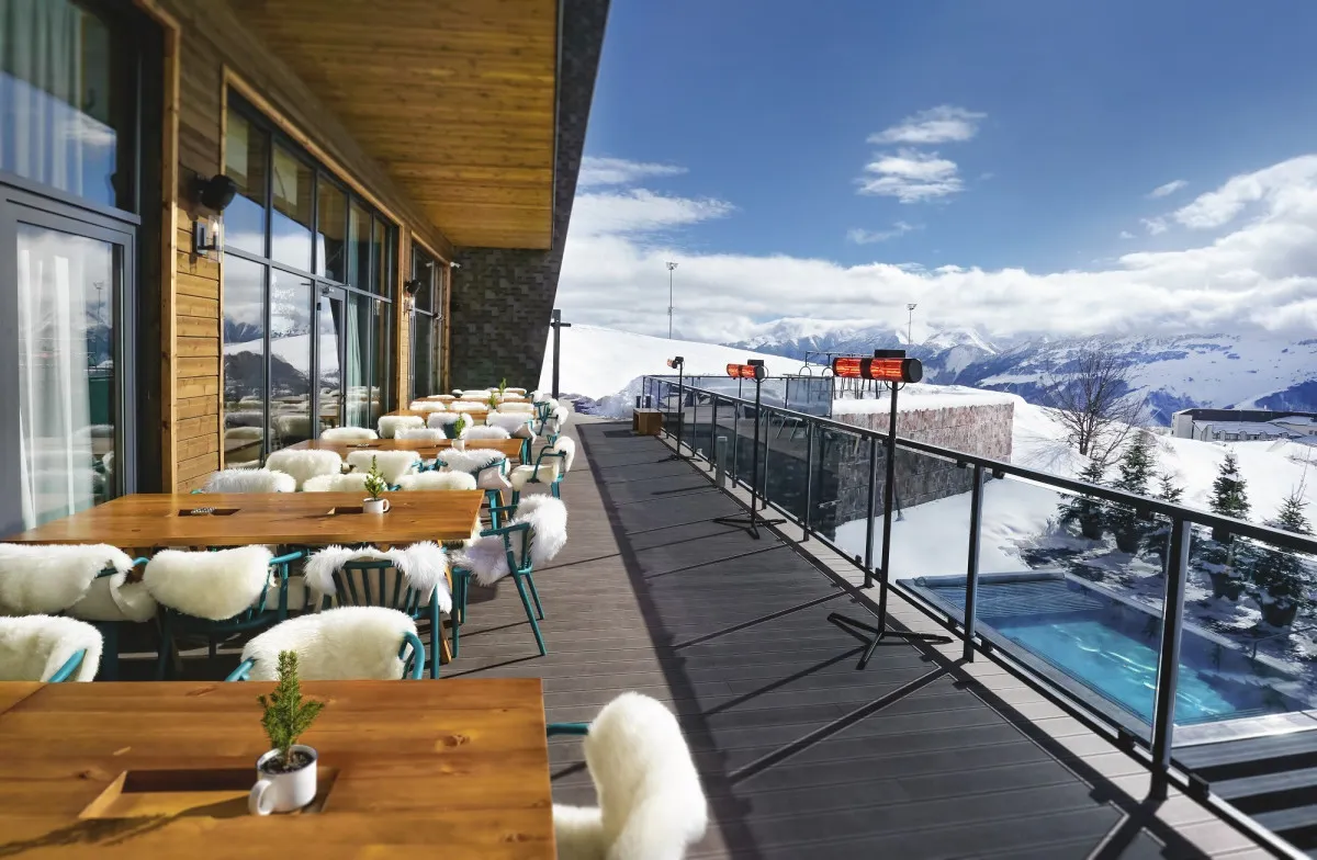 Номера отеля Gudauri Lodge спроектированы с акцентом на комфорт, сохраняя при этом связь с природой через панорамные виды. В фирменном ресторане подают грузинские блюда из местных продуктов – традиционная кухня сочетается с современной подачей в уютной атмосфере.