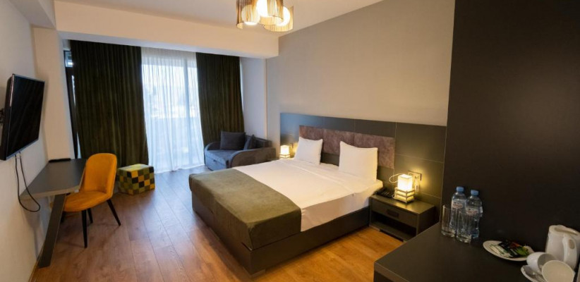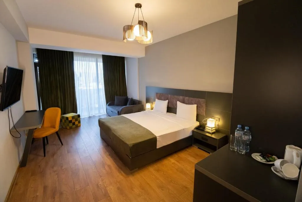 Jazz Hotel Tbilisi – современный четырёхзвёздочный отель, расположенный по адресу 23 Makhata Rise, Тбилиси, Грузия. Отель удачно сочетает городской комфорт и удобства для отдыха: входит крытый бассейн, сауна, терраса-солярий и большая крыша с обзором города. Номера – светлые, звукоизолированные, с кондиционером, балконами и мини-баром, что создаёт приятную атмосферу даже в центре города.